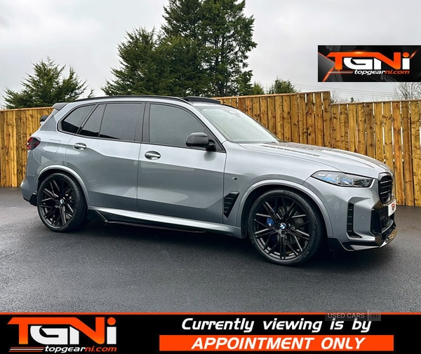 Magherafelt0 Previous Owners, Huge Spec NI from new Skyscraper Grey X5 MSport with only 18k miles from new. Finished inside with merino black leather and features including; Seven Seater Panoramic Skylounge Opening Roof Twin Axle Air Suspension Quilted Merino Comfort Leather Comfort access BMW Individual Shadowline Lights Harmon Kardon Sound High Beam Assist Full privacy Ambient lighting Gloss Black Aero Styling Pack Gloss Black mirrorsOur 22" Alloy Wheel & Continental Star Rated Tyre package shown is an Optional Extra £2495 other options available on requestUsual dealer facilities available to include:Competitive Finance Packages from a wide range of lendersUpgraded Warranty availableCredit/Debit Cards acceptedSensibly priced trade in's acceptedAll vehicles come health checked, fully detailed & serviced if required before collection.Opening Hours:MonFriday 9am to 6pm,Saturday 9am to 2pm,Sundays ClosedIndoor bright and dry viewing area available on request.Happy to take on the day AGREED Euro EquivalentServices Include:*Option to extend vehicle warranty*Vehicle service plans available*Fully trained technicians on site in our busy workshop*MOT Prep*Towbars supplied & fitted*Alloy wheel & tyre showroom onsite*Replacement tyre sales*4x4 Styling Packages*Free courtesy car on request