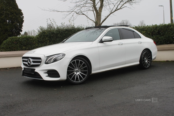 Maghera1 Previous Owner, Just In!!! 2018 MercedesBenz E220d AMG Line Premium 4dr Auto, Finished in White with a Black Half Leather Interior!!!20" ALLOY WHEELS OPTIONAL EXTRA OF £895 Electric Panoramic Sunroof Electric Memory Seats Bluetooth Connectivity Satellite Navigation HDD Multimedia Centre DAB Digital Radio Heated Seats Parking Camera Parking Sensors Privacy Glass Cruise Control Alloy Wheels NI registeredPart Exchange: £16,995.00Competitive Finance rates from a wide range of lenders.Credit/Debit Cards accepted.Trade in's accepted with competitive prices.Each vehicle will receive a full detail/valet before handover and serviced if required.We offer a range of optional extras upon the customers request, such as: Upgraded Alloy Wheels Towbars Body styling Privacy glass DechromingPlease note that these extras come at an additional extra cost.Call us on 028 7964 4233