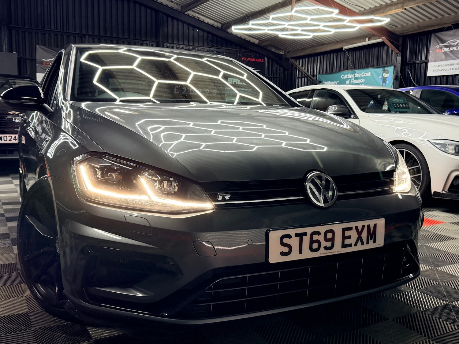 1 Previous Owner, Full Service History, VEHICLES ARRIVING DAILY 2 OWNERS FROM NEW £20995 2019 69 REG AUTOMATIC DSG 52KFULL SERVICE HISTORYHALDEX OIL CHANGED £2800 FACTORY EXTRAS DYNO AUDIO SOUND PACK HIGHBEAM ASSIST HEATED SEATS REAR CAMERA SAT NAVAGTION 19 INCH PRETORIA ALLOYS METALIC INDIUM GREY CLIMATE WINDSCREEN VOLKSWAGEN GOLF R TFSI 4 MOTION 2019 69REGHEATED SEATSSAT NAVAGTION DYNO AUDIO 2.0 TURBO 300 BHP AC EW PAS INDIVIDUAL MODES XENON LIGHTS DYNAMIC LIGHTS BRAKE ASSISTCRUISE CONTROL AUTOMATIC 6 MONTHS WARRANTY 12 MONTHS MOT 12V Socket Luggage CompartmentActive Info DisplayCarNet App ConnectCarNet Security and Service including eCallComposition Media SystemDiscover Navigation TouchScreen NavigationRadio System with CarNet Guide and InformRear Window AerialAdaptive Cruise ControlBrake Pad Wear IndicatorDriver Alert SystemDriving Mode SelectionLow Washer Fluid Warning LightMultifunction ComputerParking Sensors Front and RearRear View CameraSpeedo and Rev Counter Electronic Odometer Trip Service Interval Display Exterior Temperature Gauge and Fuel GaugeTyre Pressure Loss Indicator18in Alloy Wheels CadizBody Coloured BumpersBody Coloured Door HandlesBrake Calipers BlackChrome Trimmed Front Air Intake SurroundElectric Windows Front and RearExtended Sill Strips FlaredHeated Rear WindscreenHeated Windscreen Washer JetsMatt Chrome Effect Door MirrorsMirror PackR Styling PackRear Diffuser in Black with Twin Oval Chrome Exhaust Tailpipes Left and RightRear Tinted Glass B Pillar Backwards Approx 65 Percent TintedRemote Electrically Foldable Door Mirrors Door Mirror Puddle Lights and Reverse Activated KerbView Adjustment on Passengers Door MirrorsSteel Space Saver Spare WheelTailgate with Integrated Rear Roof SpoilerUnique R BadgingUnique R Radiator Grille with Matt Chrome StripAutomatic ComingLeaving Home Lighting FunctionDusk Sensor Automatic Driving LightsHeadlight WashersHigh Level 3rd Brake Light Incorporating LED TechnologyLED Headlights with Dynamic Curve LightLED Headlights with Dynamic Light AssistLED Tinted Rear Light ClustersLights on Warning BuzzerRear Lights Incorporating LED TechnologyAmbient LightingAmbient Lighting PackBag Hooks in the Luggage Compartment x2Black RoofliningCarbon Touch Decorative Inserts in Dash and Door PanelsCarpet Mats Front and RearChrome Plated Air Vent SurroundsChrome Plated Electric Mirror Adjustment Switch SurroundChrome Plated Electric Window Button SurroundsChromePlated Light Switch SurroundClimate ControlConvenience PackCover for Storage Compartment in Centre ConsoleCup Holders Front x2Driver Personalisation ProfileDrivers and Passengers Safety Optimised Head RestraintsDust and Pollen FilterFront Centre Armrest with Storage Compartment and Two Rear Air VentsFront Footwell IlluminationFront Seat Back Storage PocketsFront Sport Seats with Height and Lumbar AdjustmentFront Sports Seats with Embroidered R LogoGalvanised BodyGlovebox CooledGrab Handles Front x2 Rear x2 with Coat HooksHeated Front SeatsIlluminated Door Sill ProtectorsInstrument Cluster with R Specific DesignInstrument Lighting White Adjustable Panel IlluminationInterior Light DelayLoad Lashing Points x4 in Luggage CompartmentLoadThrough ProvisionLuggage Compartment Cover StowableLuggage Compartment LightLuggage Compartment Storage Area on Left and RightLumbar Support for Drivers and Front Passenger SeatPiano Black Decorative Inserts in Centre ConsolePremium USB CableRain Sensor and Automatic Dimming RearView MirrorReading Lights Front x2 and Rear x2 LEDRear Centre Armrest Folding with Cup Holders x2Reflectors in DoorsSplit Folding Rear Backrests 6040Stainless Steel Pedals Clutch Brake and AcceleratorSteering Column Height and Reach AdjustableSteering Wheel Multifunction Leather Trimmed with Paddle ShiftStorage Compartment in Centre ConsoleStorage Compartment in Front DoorsStorage Compartment in Rear DoorsStorage Compartment in Roof Console with CoverThree Rear Head RestraintsUnique R Gear Lever KnobVanity Mirrors IlluminatedVariable Boot Floor Height Adjustable and RemovableWindscreen Wiper with Intermittent Wipe and 4 Position DelayWinter PackProgressive SteeringR Sports Suspension LoweredABS AntiLock Braking System with HBA Hydraulic Brake AssistAirbagsAlarm with Interior ProtectionAntiTramp FunctionAutomatic PostCollision Braking SystemChild Security Locks in the Rear DoorsESC Electronic Stability Control including EDL Electronic Differential Lock and ASR Traction Control with Deactivation via Infotainment SystemElectronic Engine ImmobiliserElectronic Parking Brake with Auto Hold FunctionFront AssistHeightAdjustable Front ThreePoint Seat Belts with TensionersISOFIX Child Seat Preparation for 2 Rear SeatsKeyless EntryPreCrash Prev