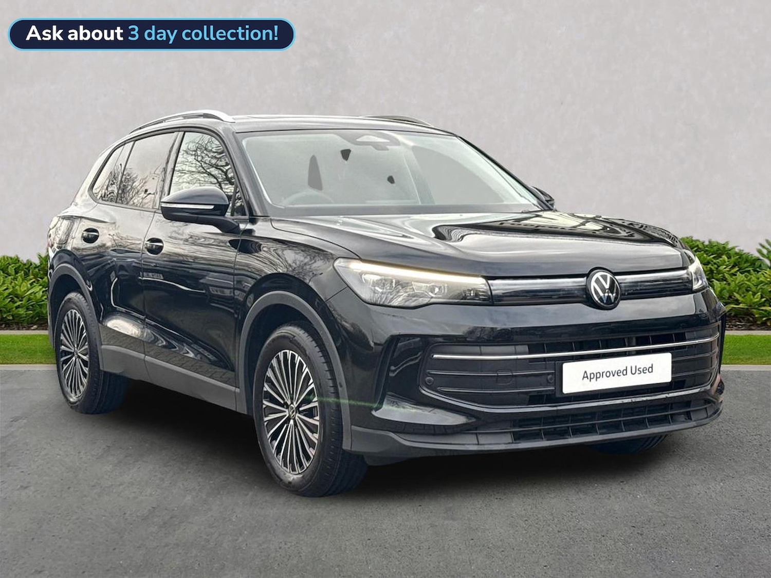 GuildfordInsurance Group 21, 0 Previous Owners, Franchise Approved, Volkswagen Tiguan 1.5 eTSI MHEV Match DSG ExDemonstrator Available from 31 March 2026 Registration: LA75 PHF Mileage: 1,500 miles Fuel Type: Mild Hybrid Petrol (eTSI) Transmission: DSG Automatic Vehicle Description This Volkswagen Tiguan Match eTSI DSG is a highspec, mild hybrid SUV offering smooth performance, excellent efficiency and advanced technology. Finished in Grenadilla Black Metallic, this lowmileage exdemonstrator combines premium comfort with intelligent driver assistance, making it ideal for family use and longer journeys. With a panoramic sunroof, electric tailgate and cuttingedge safety systems, this Tiguan delivers refinement and practicality in equal measure. Key Features Exterior & Styling Grenadilla Black Metallic paint 18" Napoli alloy wheels (black, diamondturned) Panoramic glass sunroof Silver roof rails Privacy glass (90% tinted from Bpillar) Illuminated front and rear light signature Interior & Comfort Heated front seats Heated leatherwrapped multifunction steering wheel with paddles Ambient interior lighting with 10 colour options Keyless Entry Easy Open & Close electric tailgate with virtual pedal Winter Pack Technology & Infotainment Discover Media Navigation system Wireless smartphone charging IDA voice assistant USBC ports front and rear (up to 45W charging) Driver Assistance & Safety Adaptive Cruise Control (ACC) Lane Assist and Side Assist Front Assist with pedestrian and cyclist monitoring Rearview camera Park Assist Pro with Remote Park Assist and memory function Predictive speed limiter Front Cross Traffic Assist ISOFIX child seat mounting points (rear and front passenger seat) Antitheft alarm with interior monitoring Volkswagen Approved Used Benefits (2026) Finance your Volkswagen with Solutions PCP and enjoy: Up to 2 years Servicing for only £99 1 year Volkswagen Warranty 1 year Roadside Assistance Plus a whole load of peace of mind Deposit Contributions with Solutions PCP £250 deposit contribution on vehicles aged 012 months £250 deposit contribution on vehicles aged 1336 months Electric Vehicle Offers £250 deposit contribution on ID. models aged 3 years and over Important Information Available on all vehicles up to 8 years old. Covers two consecutive services for Petrol, Diesel and eHybrid vehicles. Servicing for Battery Electric Vehicles also includes 1 MOT. Volkswagen Finance. Valid for vehicles up to 100,000 miles and less