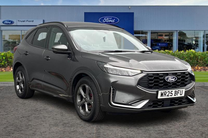 Insurance Group 17, 12.3 digital colour instrument cluster, 360 degree view camera, Cross traffic alert with active braking, eCall (emergency call), Ford easy fuel, Ford SYNC 4 Navigation with 13 touchscreen, DAB radio, emergency assistance, Andriod Auto/Apple CarPlay, 5G modem & Ford Pass connect, Front and rear parking sensors, Hands free power tailgate, Lane keeping aid with lane departure warning, Power assist steering, Selectable drive modes, Service interval indicator, Auto headlamps with high and low beam, Black roof rails, Body colour bumpers, Front LED fog lamps, Large rear spoiler, LED daytime running lights, LED rear lights, LED third brake light, Pop out door edge protectors, Power front/rear windows with global close, Power heated folding door mirrors with puddle lights, memory function and camera, Quickclear heated windscreen, Rain sensing wipers, Rear privacy glass, Rear side wing doors, Rear wiper, STLine body styling kit, 2nd row sliding seats, Electronic automatic temperature control (EATC), Front and rear head restraints, Partial premium touch sensico upholstery, Rear centre head restraint, Single front passenger seat, Sports seats, 3x3 point rear seatbelts, Airbags front driver/passenger, front and rear curtain, Drivers knee airbag, Dynamic brake support, Electronic stability control (ESC) and ABS, Evasive steering assist, Ford MyKey Gen 2 safety system, Manual child proof rear door locks, Pre collision assist with autonomous emergency braking, Rear seat Occupancy