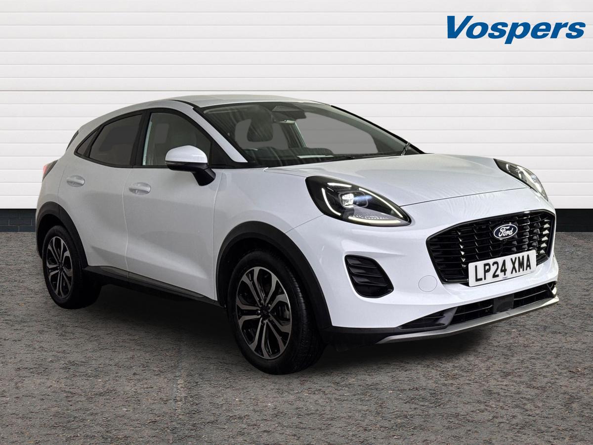 ExeterInsurance Group 12, 1 Previous Owner, .Key Features Rear parking sensors Rear view camera Cruise control with intelligent speed assist SYNC4 with connected navigation Ownership: 1 This 2024 Ford Puma T Titanium is a manufacturer approved vehicle, offering you peace of mind. This stylish SUV is powered by an efficient 1.0 litre petrol hybrid engine, meeting Euro 6 emission standards. It comes equipped with a rear view camera and rear parking sensors, which include parking assistance for both camera and sensor, making manoeuvring simpler. The Ford Puma T Titanium is designed to impress with its impressive fuel economy, achieving up to 52 miles per gallon. This figure, along with its low CO2 emissions, indicates that this vehicle offers a more economical and environmentally conscious driving experience compared to many other cars in its class..Driver impairment monitor, Emergency call service, Ford easy fuel, Full digital 12.8'' instrument cluster, Lane keeping aid with lane departure warning, Power assist steering, Selectable drive modes(Normal, sport, Eco, trail, slippery), Speed sign recognition, Standard suspension, 12'' landscape touchscreen display with wireless apple car play and android auto 6 speaker audio system, Ford pass connect and emergency assistance, Ford SYNC4 with connected navigation, Automatic headlights with rain sensing wipers and auto high beam, Front fog lamps, LED daytime running lights, LED rear lamps, LED third brake light, Quickclear heated windscreen, Rear privacy glass, Rear side wing doors, Rear wiper, 3 seat bench in 2nd row, Centre console with armrest and stowage, Electronic automatic temperature control (EATC), Ford megabox extended bootspace, Front and rear head restraints, Front floor mats, Manual 4 way driver seat adjust with lumbar adjustment, Single front passenger seat, Titanium cloth upholstery, 3 rear seatbelts, Child safety lock, Electronic stability control (ESC) and hill start assist, Precollision assist with autonomous emergency braking, pedestrian/cyclist detection & postcollision braking, Tyre pressure monitoring system (TPMS), Thatcham alarm, 17'' Absolute black machined finish alloy wheel