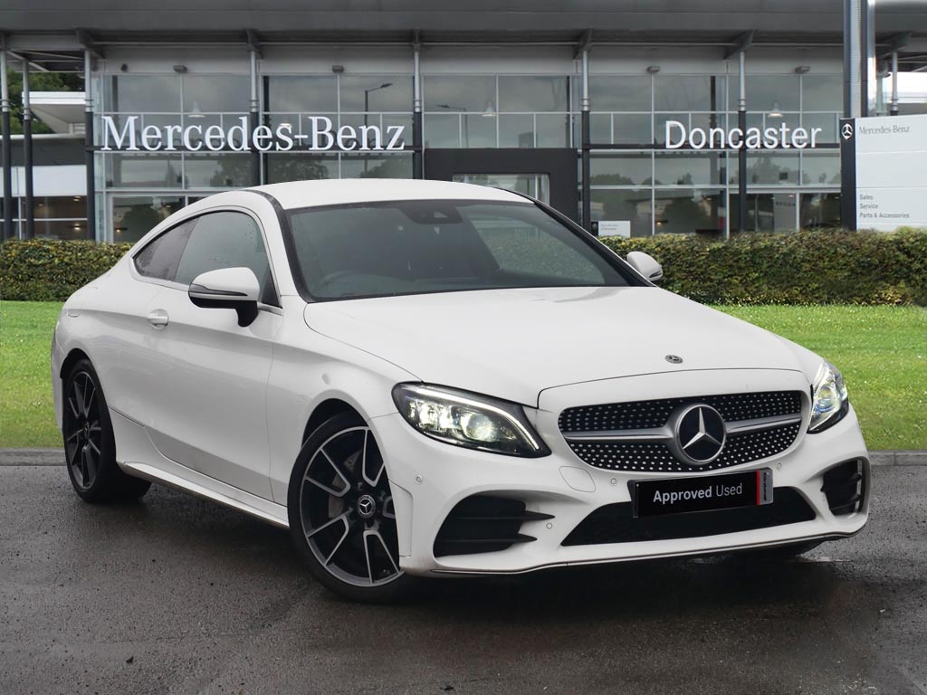Doncaster1 Previous Owner, Active park assist with parktronic system, Attention assist, Bluetooth interface for hands free telephone, Collision prevention assist plus, Comand Online HDD Nav with media interface,radio/CD/DVD/MP3, 10.25 screen, linguatronic voice control, DYNAMIC SELECT with a choice of driving modes (ECO, Comfort, Sport, Sport+ and Individual), Mercedes connect me with remote online, Multi function trip computer, Outside temperature gauge, Remote boot release, Reversing camera, Service indicator (ASSYST), Smartphone integration with Apple CarPlay and Android auto, Speed sensitive steering, Stop/start system, Wireless charging, Diesel particulate filter, 2 USB ports, Burmester surround sound system, DAB digital radio module, Mercedes Audio 20 radio/single CD, SD card slot, Steering wheel audio controls, Adaptive brake lights, AMG front, rear apron and side skirts, Auto dimming driver's door mirror, Auto dimming rear view mirror, Body coloured bumpers, Body coloured door mirrors, Chrome grille surround, Chrome pins diamond radiator grille with integrated stars, Door sill plates with "MercedesBenz" lettering, Electric adjustable/heated/folding door mirrors, Electric windows one touch open/close, Green tinted glass, LED daytime running lights, LED Indicators, LED tail lights, LED third brake light, Multi beam LED headlights, Radio aerial in side window, Rain sensor windscreen wipers, Side windows surround in polished aluminium, Twin exhaust tailpipes x2, 2 cupholders in front centre console, 2 rear head restraints, 3 spoke flat bottom multifunction leather AMG steering wheel, 40:20:40 split folding rear seats, Ambient lighting, AMG floormats, Artico manmade leather upper dashboard and beltlines with contrast stitching, Auto dualzone climate control system, Auto MercedesBenz child seat recognition sensor, Door courtesy lamps, Electrically adjustable front seats, Front centre armrest with storage compartment, Front footwell illumination, Heated front seats, Height adjustable front seats, Illuminated front/rear door handle recesses, Illuminated glovebox, Isofix rear child seat fastenings, LED reading lights, LED rear reading lights, Sports pedals with stainless steel surfaces and rubber studs, Sports seats with integrated headrests, Steering wheel gearshift paddles, Sunvisors with illuminated vanity mirrors, Seat comfort pack C Class, Stowage space pack C Class, 2 rear seatbelts, 3 point automatic seatbelts, ABS, Active bonnet, Adaptive brake system, Black seat