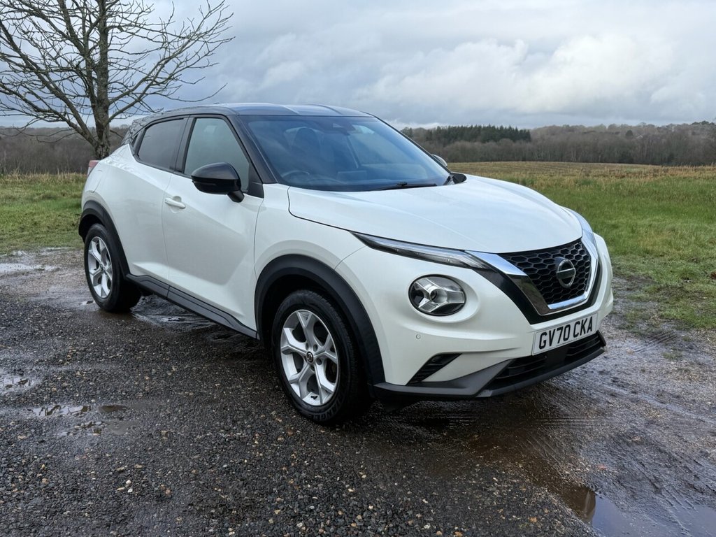 FarehamInsurance Group 13, 0 Previous Owners, Buy with confidence Please see our reviews. Irving West of Wickham, Fareham are pleased to offer a Nissan Juke finished in Storm White with a Pearl Black roof and grey cloth seats. The car is fitted with the superb 1.0 litre Turbo petrol engine which gives great economy and has plenty of power. This car is supplied with a Full Service History and in preparation for sale has had a service, a full vehicle health check and an MOT till November 2026. Generally in good condition for a car of this age and mileage Feel free to ask for a full walk round video! The specification includes 17" Alloy Wheels, Climate Control, Sat Nav, Cruise Control, Phone Connectivity and lots more. As expected, the car runs and drives very well and is very comfortable to drive. Any trial, test or inspection welcome and any part exchange also very welcome. Please note we encourage booking an appointment as the cars are not always stored on site. Please get in touch for more details or to arrange a viewing. 3 months warranty included. We also offer finance so you can spread the cost of this car please get in touch to apply or for more details.Storm White with Pearl Black Roof, 17in Alloy Wheels, 2 x Cup Holder on Centre Console, 3 Adjustable Rear Head Restraints, 6040 Split Rear Folding Seats, 7in Full Colour TFT Screen Combimeter, ABS with EBD and Brake Assist, Active Ride Control, Active Trace Control, Android Auto and Apple CarPlay, Auto Dimming Rear View Mirror, Automatic Air Conditioning, Automatic Hazard Signal and Emergency Stop Signal, Body Coloured Handles, Cabin Light Front and Rear, Chrome Interior Door Handles, Cruise Control, DAB Radio, Drive Modes SportNormalEco, Driver and Passenger Sun Visor with Vanity Mirror, DriverPassengerSide and Curtain Airbags, ESP Electronic Stability Programme, Electric Heated AutoFolding Door Mirrors, Electric Parking Brake with Auto Hold Function, Emergency and Breakdown Call, Exterior Mirrors Painted Pearl Black, Front Armrest, Front Door Pockets with Drinks Bottle Holders, Front Seat Belt Height Adjustment, Front and Rear Electric Windows with One Touch Driver Window, Front and Rear Seatbelt Reminder, Grab Handles Passenger and Rear, Headlights Follow Me Home Function, Headlights High Beam Assist, Height Adjustable Driver Seat, Hill Start Assist, ISOFIX Child Seat Anchoring Points Rear x2, Intelligent Emergency Braking with Pedestrian and Cyclist Recognition, Intelligent Key with Start Push Button, Intelligent Lane Intervention and Warning, LED Daytime Running Lights, LED Headlights, LED Rear Fog Lights, LED Rear Lights, Leather Gear Knob, Leather Steering Wheel, Luggage Board System, Luggage Space Lighting, Monoform Sporty Seats, Multifunctional Steering Wheel, NissanConnect 8in Touchscreen Entertainment System, Outside Temperature Sensor, Parking Sensor Front, Power Assisted Steering, Privacy Glass, Rain Sensing Wipers, Rear Coat Hanger Drivers Side, Rear Console USB Port, Rear Parking Camera, Rear Parking Sensors, Rear Spoiler, Shark Fin Antenna Pearl Black, Speakers x6, Speed Limiter, Syntech Leather Knee Pad, TPMS Tyre Pressure Monitoring System, Telescopic Steering Wheel Adjustment, Three Blink Turn Signal, Traffic Sign Recognition, Tyre Repair Kit, USBAUX Socket Input and Bluetooth Connectivity, VDC Vehicle Dynamic Control, Welcome Light and Console Tray Ambient Lighting, WiFi and Voice Recognition