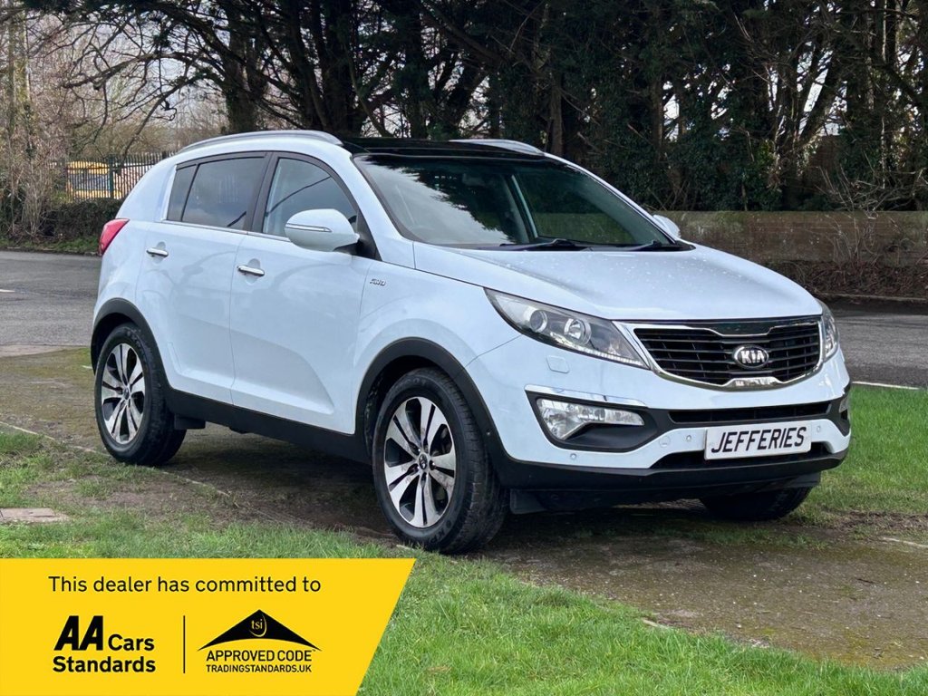 WestburyInsurance Group 19, 1 Previous Owner, We are pleased to offer for sale This KIA SPORTAGE 2.0 CRDI KX4 SUV AWWD5D Finished In bright white, diesel (manual), with 100,532 warranted miles with grey leather interior, this car has good service history with 4 stamps in the book, the car will come with a NEW 12 month MOT. 3 months in house warranty and 12 month breakdown cover, features include; electric windows, 18 inch alloy wheels, air conditioning, electric mirrors, electric folding mirrors, Bluetooth, rear sensors, auto lights, auto wipers, pan roof With sunroof, tinted rear windows, sat nav, 7 inch touchscreen, cruise control, height adjust drivers seat, stop/start technology, power assisted steering, remote central locking with 2 keys, Radio/CD/AUX Player, steering wheel mounted controls, rear fogs, driver passenger side airbags, ABS Brakes, 3x3 rear seats, rake/reach steering wheel adjust, Isofix, all headrests, black trim styling, spare wheel, heated front seats, heated rear seats, front armrest, detachable tow bar, "Drive with confidence at our Trading Standards Approved dealership! Enjoy peace of mind with FREE AA Breakdown Cover or Member Upgrade on all vehicles. Explore affordable finance options with our fully FCA Licensed team. Plus, every car comes with our own 3 months warranty, with extended warranties available for added protection. Start your journey with us today!".NEW MOT, BLUETOOTH, REAR PARKING SENSORS, SAT NAV, 18 INCH ALLOYWHEELS, Arctic White, 12V Power Socket Front, 12V Power Socket Luggage Compartment, 18in Alloy Wheels, 3 x Passenger Assist Grips, 6Speaker System, 6040 Split Folding 2nd Row Seats, 7in Touchscreen Satellite Navigation with European Mapping with Traffic Message Channel TMC, ABS Anti Lock Braking System, Active ECO Switch, Adaptive Brake Lights, Air Conditioning Dual Automatic Climate Control, Air Filter, Airbags Curtain Twin Full Length, Airbags Driver, Airbags Front Side, Airbags Passenger, Alarm System, AllRound Height Adjustable Headrests, Armrest Centre Console with Storage, Armrest Front, Auto Dimming RearView Mirror, Automatic Headlight Control, Bluetooth with Voice Recognition, Body Coloured Door Mirrors, Centre Cabin Light, Child Safety Rear Door Locks, Cornering Lights, Cruise Control, Cupholders Centre Console x2, Cupholders in Rear Armrest, DBC Downhill Brake Control, Dashboard Metallic Finish Trim, Deadlocks, Door Handles Chrome, Drivers Seat Height Adjuster, EBD Electronic Brakeforce Distribution, ESC Electronic Stability Control, Electric Windows Front and Rear, Electrically Adjustable and Heated Door Mirrors, Electrically Folding Door Mirrors, Emergency Stop Signalling ESS, Engine Immobiliser, Engine StartStop Button with Smart Entry System, External amp and sub woofer, Front Cabin Map Light, Front Door Courtesy Reflectors, Front Fog Lights, Front Grille Chrome, Front Passenger Airbag Cut Off Switch, Front Seatback Pockets, Front and Rear Door Map Pockets with Bottle Holder, Front and Rear Door Storage, Full Size Alloy Spare Wheel, Glovebox Cooled, Glovebox with Illumination, Head Rests Front Active, Headlight Washers, Headlights Follow Me Home Function, Headlights Xenon with Auto Levelling, High Mounted Brake Light, HillStart Assist Control HAC, ISOFIX Child Seat Top Tethers and Anchor Fixings, Impact Sensing Auto Door Unlocking, Integrated Indicator Lights LED in Door Mirrors, Interior Door LockUnlock Function, LED Daytime Running Lights, Leather Trimmed Door Armrests, Leather Trimmed Gear Shift, Leather Trimmed Steering Wheel, Locking Wheel Nuts, Luggage Area Light, Luggage Compartment Hooks, Luggage Compartment Load Cover, Metallic Finish Interior Door Handles, Motor Driven Power Steering MDPS, Mouldings Side Sill Black, Mouldings Waistline Chrome Coated, Panoramic Sunroof Electric One Touch with Safety