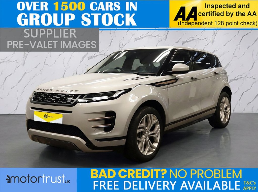 PrestonInsurance Group 31, 1 Previous Owner, This 2019 Land Rover Range Rover Evoque D180 R Dynamic SE boasts a clear vehicle history check and an MOT valid until December 2026, offering peace of mind. This stylish SUV features a 2.0L Diesel engine, Four Wheel Drive capability, and meets Euro 6 emission standards. Inside, youll find comfortable 14 way heated electric memory front seats, dual zone climate control for personalised comfort, and seamless integration with Apple CarPlay. The R Dynamic SE trim also includes automatic headlights and a 360 degree parking aid system to assist with manoeuvring. Experience impressive performance with a 060mph acceleration time of just 8.8 seconds, demonstrating its dynamic capability. This Evoque also benefits from low CO2 emissions, making it a more environmentally conscious choice compared to many other vehicles in its class. The combination of its advanced features, robust build, and efficient performance makes this Range Rover Evoque a compelling option for those seeking a premium and capable SUV. Part Exchange Welcome. All Majors Cards Accepted. We Have Finance Available. A Wide Range of Warranties. We Also Offer Low Cost, Nationwide Delivery Available From £1.50 a Mile. **Every endeavour is made to ensure specifications and descriptions are correct. Due to model changes specification may vary. Phone for details. MPG figures shown are government official figures.**.16way Heated Massage Electric Memory Front Seats, Power Socket Pack 2, Fixed Panoramic Roof Including Powered Blind, Wade Sensing, Kaikoura Stone, 14way Heated Electric Memory Front Seats, 20in Alloy Wheels 5 SplitSpoke Style 5079 Gloss Sparkle Silver, 360 Degree Parking Aid, 402040 Split Fold Rear Seat, ABS Anti Lock Braking System, ATPC All Terrain Progress Control, Airbags Driver Knee, Airbags Front Driver and Front Passenger, All Season Tyres, Ambient Interior Lighting, Android Auto, Apple CarPlay, AutoDimming Interior Rear View Mirror, AutoDimming Power Fold Heated Door Mirrors with Memory and Approach Lights, Automatic Headlight Levelling, Automatic Headlights, Autonomous Emergency Braking, Black Gearshift Paddles, Bluetooth Connectivity, Body Coloured Roof, Brake Pad Wear Indicator, Bright Metal Pedals, Carpet Mats, Chrome Treadplates, Clear Exit Monitor, Cruise Control and Speed Limiter, Customer Configurable Autolock, D180 Badge, DAB Digital Audio Broadcast, DSC Dynamic Stability Control, Driver Condition Monitor, EBA Emergency Brake Assist, EBD Electronic BrakeForce Distribution, EPAS Electronic Power Assisted Steering, ETC Electronic Traction Control, Efficient Driveline, Electric Parking Brake, Electric Windows with OneTouch OpenClose and AntiTrap, Evoque and RDynamic Badge, Flush Deployable Door Handles, Front and Rear Animated Directional Indicators, HDC Hill Descent Control, Headlights Automatic High Beam Assist, Headlining Ebony Morzine, Heated Rear Window with Timer, Hill Launch Assist, InControl Remote App, InControl Apps, Interactive Driver Display, Intrusion Sensor, Lane Keep Assist, Leather Steering Wheel, Locking Wheel Nuts, Low Traction Launch, Manually Adjustable Steering Column, Navigation Pro, Overhead Lighting Console, Overhead Stowage for Sunglasses, Park Assist, Passive Front Headrests, Passive Suspension, Power Operated Child Locks, Power Socket Pack 1, Powered Tailgate, Premium LED Headlights with Signature DRL, Pro Services and WiFi Hotspot, Push Button Start, RDynamic Exterior Pack, RSC Roll Stability Control, Rain Sensing Windscreen Wipers, Rear Air Vents, Rear Fog Lights, Rear ISOFIX, Rear Traffic Monitor, Rear View Camera, SE Badge, Seat Belt Reminder, Seats Rear Centre Head Restraint, Shadow Atlas RANGE ROVER Bonnet and Tailgate Script, Side Curtain Airbags and Thorax, Smart Settings, Sound System, Standard Roof, Sun Visors Illuminated Vanity Mirrors, TPMS