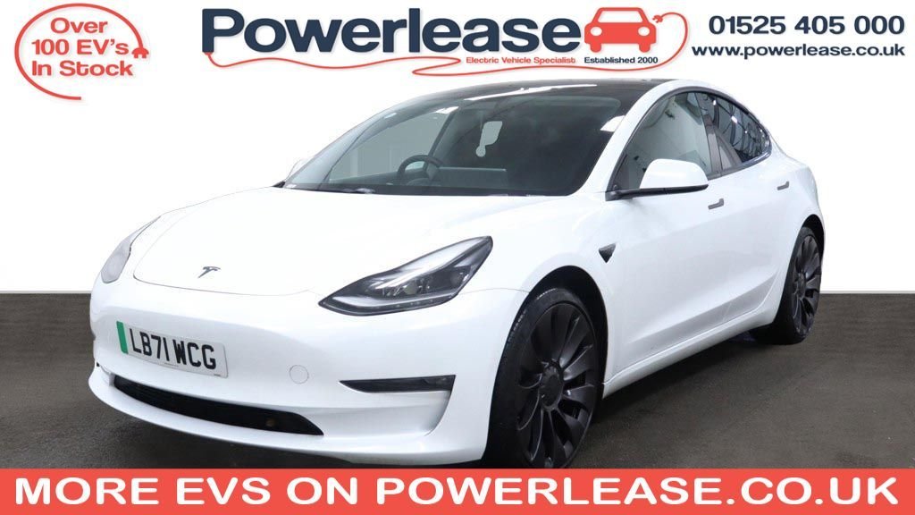 0 Previous Owners, This 2021 Tesla Model 3 Performance is a superb example, having had only one owner since new. As an electric vehicle, it offers a compelling blend of performance and efficiency, boasting a substantial 82 kWh battery that provides a maximum range of 340 miles when new. This four wheel drive model comes equipped with a fixed panoramic glass roof, complete with a panoramic sunroof, and benefits from dual zone climate control for personalised comfort. For convenience, it features adaptive cruise control and inductive charging mats for two smartphones, ensuring your devices stay powered on the go. The Model 3 Performance truly excels with its impressive acceleration, achieving 0 to 60 miles per hour in a remarkable 3.1 seconds, a figure that sets it apart from many other vehicles in its class. This rapid acceleration is a testament to its powerful electric drivetrain. When it comes to charging, you can achieve a full charge at home using a 7kW charger in approximately 12 hours, or benefit from rapid public charging, reaching 80% capacity from empty in as little as 26 minutes. BATTERY HEALTH CHECK AVAILABLE ON REQUEST SPECIALIST EV EXTENDED WARRANTIES ALL VEHICLES FULLY INSPECTED ALL VEHICLES SERVICED & MOTED HPI CHECKED AND CERTIFIED FINANCE AVAILABLE PART EXCHANGE AVAILABLE CLICK AND COLLECT AVAILABLE HOME DELIVERY AVAILABLE BUY ONLINE VIA OUR WEBSITE WWW.POWERLEASE.CO.UK IN BUSINESS FOR OVER 20 YEARS EST 2000 .12Way Power Adjustable Front and Rear Heated Seats, 15in Touchscreen with Onboard Maps and Navigation, 2 Zone Climate Control, 20in Alloy Wheels Performance, 3x3 Point Rear Seat Belts, 6040 Split Folding Rear Seats, ABS Antilock Braking System, Adaptive Cruise Control, Adaptive Steering, Additional USBA Port Glove Compartment, Air Conditioning, Airbags Curtain, Airbags Driver, Airbags Passenger, Airbags Side, Aluminium Alloy Pedals, Ambient Interior Lighting, Audio Remote Control, Auto Dimming Power Folding Heated Side Mirrors, Automated HighBeam Assist, Automatic Emergency Braking, Autopilot Function, Blind Spot Information, Bluetooth Connection, Body Coloured Bumpers, Carbon Fibre Spoiler, Centre Console with Storage 4 USB Ports and Docking for 2 Smartphones, Collision Avoidance, Custom Driver Profiles, Daytime Running Lights LED, Digital Radio, DVD, Electric Hinged Side Doors Front, Electric Hinged Side Doors Rear, Electrically Adjustable Drivers Seat, Electrically Adjustable Passenger Seat, Electrically Adjustable Steering Column TiltTelescopic, Electronic Stability Control and Traction Control, Exterior Satin Black, Fixed Panoramic Glass Roof, Front Armrest, Front Cross Traffic Camera, Front Electric Windows, Front Fog Lights, Front Head Restraints, Front Parking Sensor, Graphite Finish Seat Controls, Heat Pump, Heated Steering Wheel, Height Adjustable Drivers Seat, InCar Internet Streaming Music and Media, Inductive Charging Mats Two Smartphones, Interior Carpeting, Interior Floor Mats, Internet Browser, Internet Connection, Isofix Child Seat Anchor Points, Keyless Entry and Remote Control with App, Keyless Go, Lane Departure Warning, LED Foglights, LED Headlights, LocationAware Automatic Garage Door Opener, Map and Reading Lights, Matt Finish Trim, Media Storage, Metalised Scroll Wheels Steering Wheel, Mobile Phone App Interface, Navigation System, NonSafetyCritical Software Updates over Cellular, OEM Sound System, Park Assist Camera, Pearl White, Performance Brake Calipers, Power Steering Speed Sensitive, Powerlift Trunk, Premium Audio 14 Speakers 1 Subwoofer 2 Amps and Immersive Sound, Premium Engineered Material Black, Radio AMFM Internet Streaming, Rear Cross Traffic Camera, Rear Electric Windows, Rear Headrests, Rear Light LED, Rear Parking Sensor, Remote Central Locking, Reverse Parking Aid, SatelliteView Maps with Live Traffic Visualisation and Navigation, Satin Black Sill Plates,
