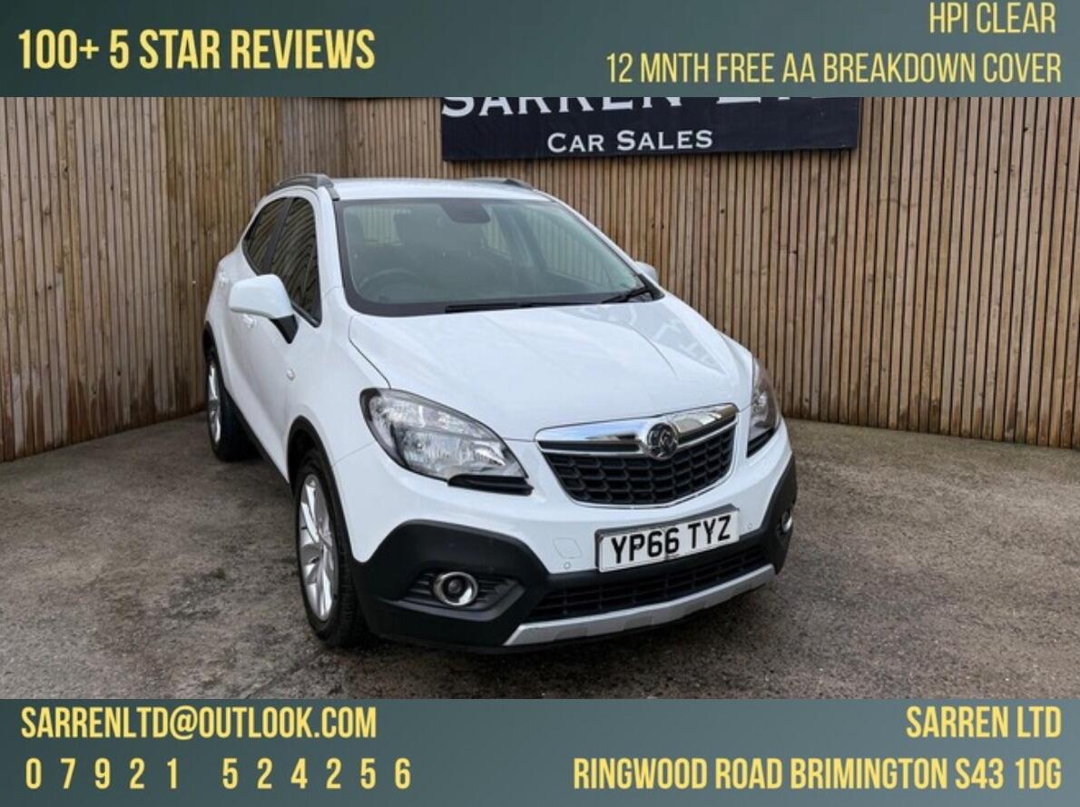 ChesterfieldInsurance Group 12, 1 Previous Owner, ***CONTACT US ON 07921524256 or EMAIL US AT SARRENLTDOUTLOOK.COM*** BEAUTIFUL Vauxhall Mokka 1.4i Turbo Exclusiv 2WD Euro 6 (s/s) 5dr finished in metallic white with excellent black cloth interior. MOT due 29/09/2026 with no advisories. FULL Service history (7) and last serviced at 67201 miles. Our Company does not receive any commission from the sale of our vehicles. Excellent specification including;18in Alloy Wheels Sterling Silver Effect230V Rear Power Outlet Behind Front Seats TwoPin EuroStyle SocketFront Parking Distance SensorsRain Sensitive Windscreen WipersRear Parking Distance SensorsBluetooth ConnectivityCruise ControlDAB Digital RadioHSA Hill Start AssistISOFIXTPMS and much mre!Absolutely gorgeous condition throughout. Extended warranty available. Here at Sarren we do not charge an admin fee for our services.We are a professional dealership with around 30 cars in stock please see our website for more. To ensure availability of stock we recommend making an appointment to avoid any disappointment. We are highly rated by Autotrader and an approved AA car dealer. All of our vehicles come with 12 months AA BREAKDOWN COVER, part exchange, warranty and delivery and finance available . Fully retail and HPI checked for your peace of mind. We are a family run business, with 20+ years in the motor trade industry and pride ourselves on our award winning aftercare service, warm welcome and pressure free environment. We are based at Sarren Ltd Ring Wood Road, Brimington, Chesterfield S43 1DG in the heart of England between junction 29a and 30 of the M1 in Derbyshire. Viewing welcome. We are open Monday through Sunday and unsociable hours at your convenience.