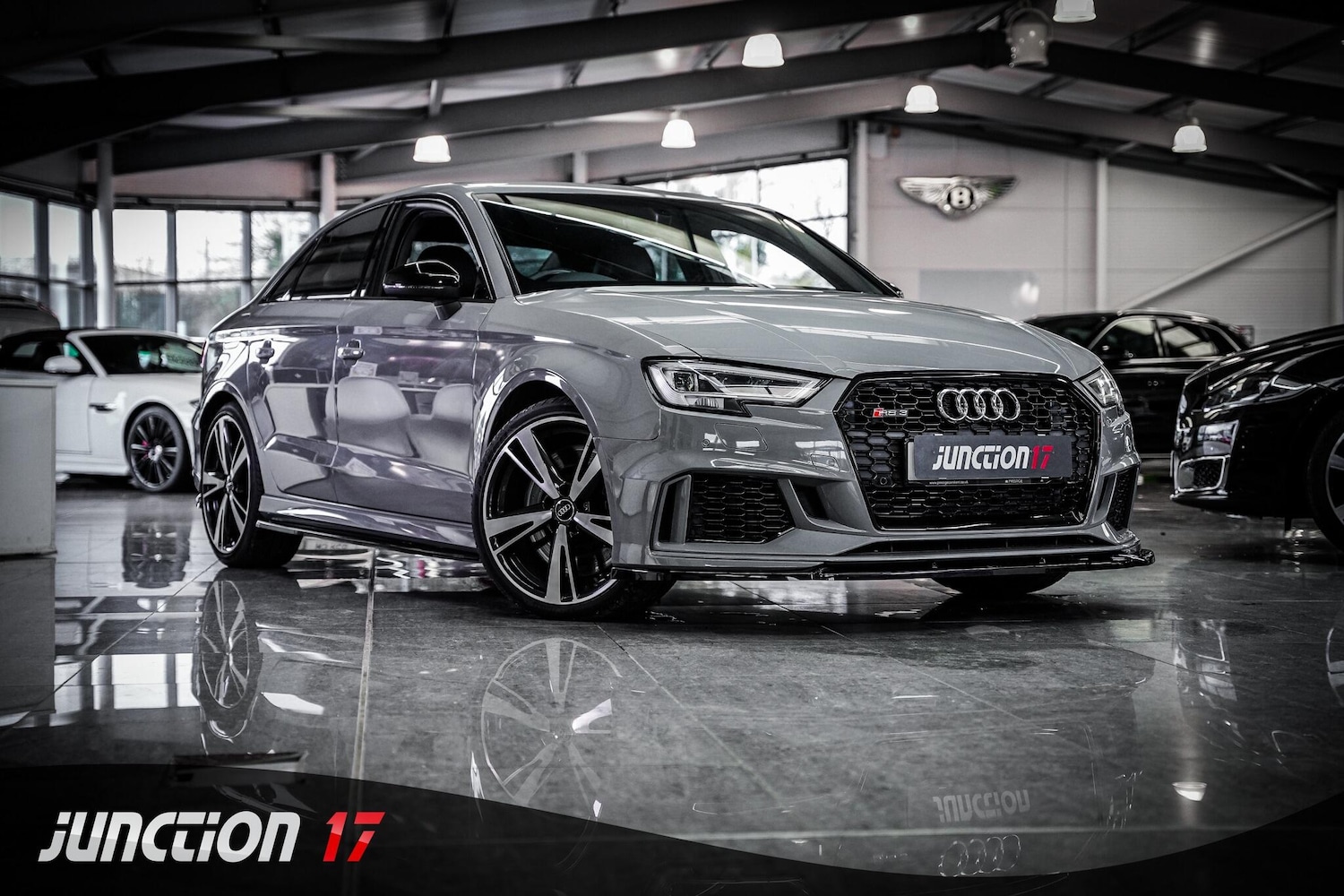 Insurance Group 46, 1 Previous Owner, *CLICK BUY COLLECT* FINANCE AVAILABLE! HPI CLEAR! Junction 17 Cars now have to offer a stunning Audi RS3 2.5 TFSI S Tronic quattro Euro 6 (s/s) 4dr.. 1 Former Keeper from New.. 5 x Service Records.. Finished in Nardo Grey and complemented by Black Fine Nappa Leather Upholstery.. Desirable Specification with new Maxton Designs exterior lip styling kit fitted by our own inhouse specialist team.. Heated Front Seats.. Bang and Olufsen Sound System.. Dual Zone Climate Control.. Navigation.. Front and Rear Parking Sensors.. 19'' Alloys.. and more.*ANY THIRD PARTY VEHICLE INSPECTIONS ARE WELCOME* *WE WILL BEAT ANY CAR VALUATION SITE FOR YOUR PART EXCHANGE* Junction 17 Cars (Runner Up at the Motor Trader Independent Dealer Awards 2019 nominated for Car Supermarket of the Year Award) is a unique family run business with over £7 millions worth of stock currently split over our purposebuilt showroom in Yaxley, Peterborough and our new showrooms in Grantham and Rugby. Our vehicles can also be reserved with a £99 refundable holding deposit to ensure that they are professionally prepared/valeted for your viewing pleasure. Competitive HP and PCP packages are available with decision/approval available within 15 minutes. We also offer comprehensive warranties over a variety of different terms as well as Williams Ceramic Coating, Flexfuel Engine Carbon Cleaning and more. **NATIONWIDE DELIVERY AVAILABLE** Payment : maximum £500 card payment balance by bank transfer