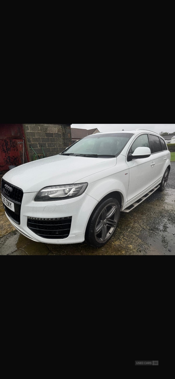 BanbridgeFinished In Executive Ibis White With Contrasting Luxury Full Black Verano Leather Interior And Alloy Inlays.108,000 Miles Backed Up With A Full Service History.This 2015 Audi Q7 3.0TDI SLine Sport Edition Quattro Executive 4X4 Is In Absolutely Stunning ConditionAnd Boasts A Huge Spec Which Includes 8 Speed Auto Sport Gear Box With Paddle Shift,Push Button Start,CD Player, Cruise Control,Bluetooth Phone Preparation , Xenon Headlamps,Colour Screen Sat Nav, Reversing Camera,Side Steps,Remote Central Locking 2x Keys,Visual Display Front And Rear Park Distance Control, Electric Memory Front And Rear Heated Sports Seats,Panoramic Roof,Dual Climate Control,Audi Mmi System,MultiFunction Steering Wheel,Power Tail Gate, Rain Sensitive Wipers,Unmarked 21"Alloy Wheels With 4x Branded Tyres,And So Much More.Very Economical Returning 38+ MPG.Offering Hand Picked Main Dealer Part Exchanges.All our cars are fully HPI Clear for full peace of mind!You will receive Friendly Advice and Genuine Help Choosing a Car.We PROMISE a Realistic Valuation if you decide to Part Exchange.6 or 12 Months Warranty Available on Selected Vehicles.We have Competitive FINANCE PACKAGES With Most Credit / Debit Cards Accepted.Advert descriptions as accurate as possible some errors may still occur