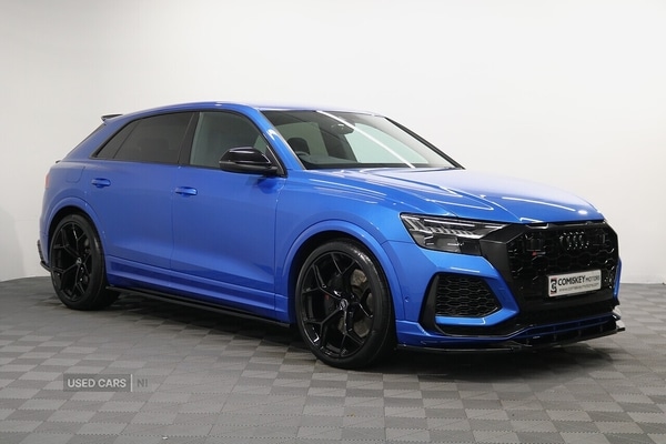 NewryMay 2023 Audi RSQ8 4.0 TFSI V8 5dr Tiptronic Quattro 600psSimply stunning vehicle finished in Audi Exclusive Ara Blue Pearl Effect paint, fitted with a full Maxton Design Aero Kit and upgraded 23" Gloss Black Alloy Wheels.Vehicle is offered in immaculate condition throughout and comes with a full Audi service history and Audi warranty until May 2026 with the option to extend.WHY BUY FROM US Multi Award winning familyrun dealership Over 150 Quality Used Vehicles onsite Transparent and honest pricing without hidden costs Top prices paid for your part exchange Competitive finance packages tailored to suit your requirements All vehicle's will come fully checked, serviced (if required) and valeted by our onsite technicians All vehicles will come with a comprehensive Comiskey Motors inhouse Warranty Nationwide delivery service available Complete Aftercare Services...We offer our customers great choice and value along with the highest level of customer service as standard. We are extremely passionate about what we do and we hope that shows in the buying experience. We look forward to meeting you soon and hope you will become one of our many happy customers