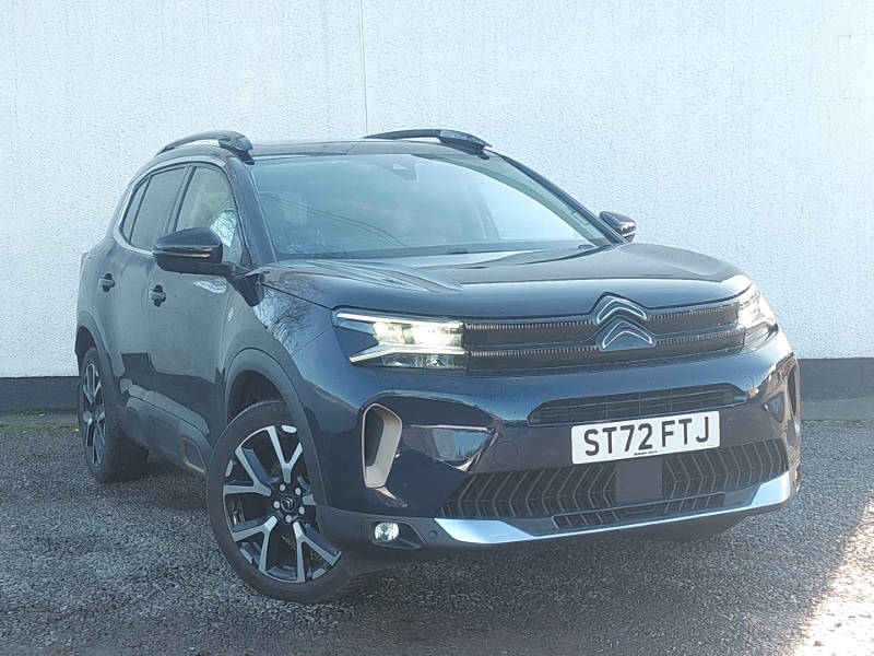 Insurance Group 19, 0 Previous Owners, Citroen connect play featuring android auto and apple carPlay, Adaptive cruise control, City camera pack with front and rear parking sensors C5 Aircross, Panoramic glass sunroof with opening front portion and electric sliding sunblind,moves rear reading lights to sides of ceiling, Motorised electric tailgate with hands free access, Smartphone wireless charging plate, 10" Touchscreen user interface with citroen connect nav, voice commands, Bluetooth handsfree and audio streaming, 12.3" digital instrument cluster with customisable zones and colour schemes, LED daytime running lights, LED Headlights, Rear parking sensor, Advanced comfort suspension, Auxiliary input socket, FM and DAB digital radio, 6 speakers, Acoustic laminated windscreen with rain and brightness sensors, Automatic headlights with welcome and goodbye lighting, CSeries edition exterior detail and badging, Front fog lights with static cornering function, Gloss black longitudinal roof bars, Sequential electric front and rear side windows with anti pinch function, Tinted row 1 windows and dark tinted row 2, CPillar and tailgate windows, Body colour front bumper with air curtain, silver painted skid plate, and matt black lower section, LED headlights with LED daytime running lights and visual signature, 3 point ISOFIX mountings on front passenger and rear outer seats, 12V power outlet and 2x USBA sockets (1x charge+data, 1x charge only) on front part of central console, Automatic bizone air conditioning with active carbon filter and air quality system, plus controllable row 2 air diffuser, Three individual sliding seats with adjustable backrest and flat floor function, Dashboard storage area to right of driver,open storage at front of central console,glovebox with smooth opening and lighting, Drive assist pack C5 Aircross, LED interior lighting C5 Aircross, 3 rear 3point seatbelts (outer seats featuring force limiters), Adaptive driver and front passenger airbags with passenger airbag deactivation function, Electronic parking brake, Front seat belts with double pretensioning, force limiters and height adjustment (driver and passenger), Front ventilated disc brakes and rear disc brakes, Hill start assist, Anti theft alarm with perimetric and volumetric protection, plus tilt sensor, Automatic door and tailgate locking with automatic unlocking in case of collision, Keyless entry and start