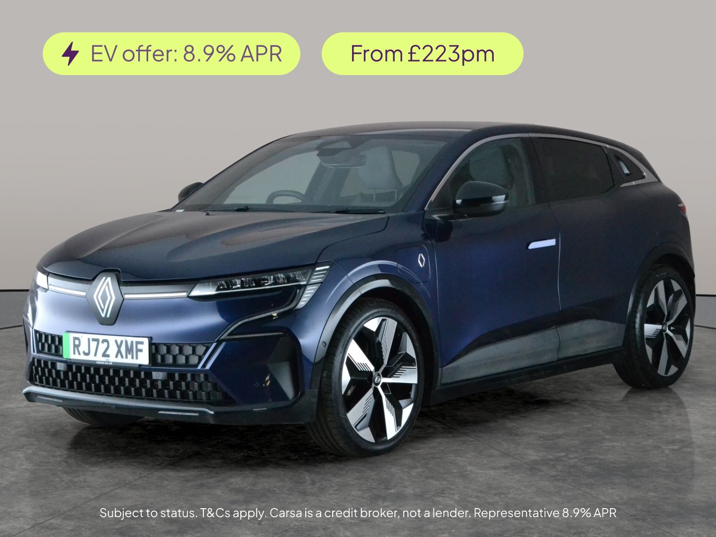 Bradford0 Previous Owners, Experience the future in this striking blue Renault Megane ETech Electric Hatchback. Enjoy the luxury of heated seats and a heated steering wheel, while Electric Seats provide extra comfort. Stay connected with Apple CarPlay and Wifi, and find your way with builtin Sat Nav. Parkings a breeze with Park Assist, Reversing Camera, and LED Headlights. Featuring Adaptive Cruise Control, Blind Spot Assist, Lane Departure Warning, Keyless Entry, and Bluetooth Audio Streaming, this Megane blends advanced technology with effortless style. 3 services recorded, last serviced on 11/12/2025 at 26,163 miles. MOT to 11/02/2027. Visit our website for service history, online valuation, full vehicle specification plus multiple images. This vehicle is VAT qualifying. Any feature/option specified here is from 3rd party data. We cannot guarantee the accuracy of any specification supplied by a 3rd party. We recommend that you physically check the specification of the vehicle on site prior to purchase. This information does not form part of the buying contract. Terms & Conditions apply. We have over 2,000 cars available from our 10 national branches, check our website to see all our stock. Our Trustpilot rating is 4.4/5 with over 9,000 reviews.