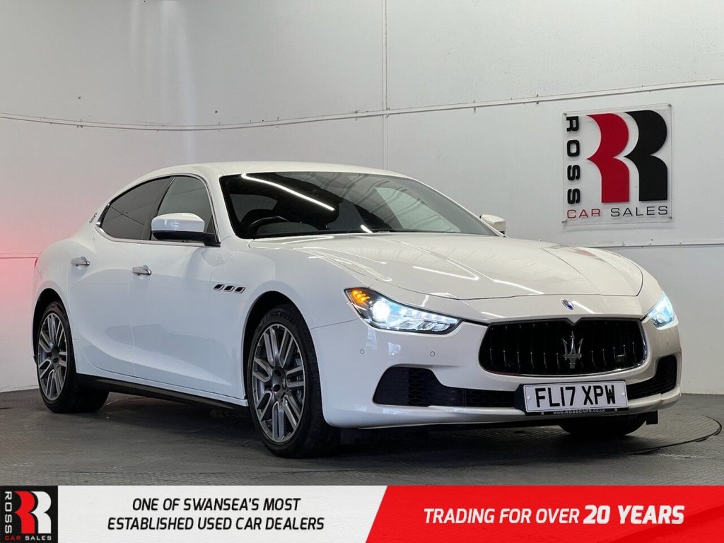 Pontardulais.12V Socket Front, 12V Socket Rear, 18in Alloy Wheels Alfieri Design, 5 Arm Multilink Rear Suspension, 7in Multifunction Digital Display Cluster with OnBoard Computer Driver Info, ABS AntiLock Braking System, ASR Acceleration Slip Regulation, Active Cruise Control, Airbags Driver DualStage Smart, Airbags Driver Knee, Airbags Front Seat Side, Airbags Head, Airbags Passenger DualStage Smart, Alarm System Perimetric and Volumetric SensingAntilift Device, Aluminium Key Fob, Automatic Headlight Activation, Automatically Dimming Rear View Mirror, BAS Brake Assist System, BiXenon Headlights, Bluetooth Connectivity, Brake Calipers in Matt Grey, DVD Audio and Video Player, Dashboard Mounted Maserati Design Clock, Dual Zone Automatic Climate Control with 13 Air Outlets 4 Rear, EBD Electronic Brakeforce Distribution, EPB Electronic Parking Brake, Electric Front and Rear Windows, Electrically Adjustable Front Seats 6 Ways, Electrically Adjustable and Foldable Exterior Mirrors, Electronic Immobiliser, Exterior Trim Chromeline, Fabric Headlining, Front Armrest with Twin Mechanical OpeningIlluminatedAir Conditioned Storage Compartment, Front Parking Sensors, Front and Rear Head Restraints with Embossed Trident Logo, Full LED Taillights and Third Stop Light Integrated Into the Rear Window, Headlight Washers, Hill Holder, I.C.E. Control Increased Control and Efficency, Interior Trim Open Pore Radica Wood Trim for Selected Interior Details, Keyless Entry and Keyless Go Function, LED Day Running Lights, Laminated Front Glass with High Thermal and Noise Insulation, Lightweight Boot Lid Construction with Keyless Opening and Remote Key Unlocking, MSP Maserati Stability Program, MSR Motor Spin Regulator, MTC Maserati Touch Control Unit Including 8.4in Touch Screen Display, Maserati Active Exhaust Sound System, Mechanical LimitedSlip Differential, MultiFunction Steering Wheel, NavTrak Vehicle Tracking System with Automatic Driver Recognition and Remote Inhibition, Rain Sensing Windscreen Wipers, Rear Armrest, Rear Parking Sensors, SD Card Reader, Satellite Navigation, Speakers x8, Speed Sensitive Power Assisted Steering, Split Folding Rear Seat at 6040, Sport Button for Sport Mode Setup, Standard Audio System, Steering Column with Manual Height and Reach Adjustments, TPMS Tyre Pressure Monitoring System with Pressure Displayed within the Central Digital Cluster, ThreeSpoke Steering Wheel and Gear Knob in Poltrona Frau C