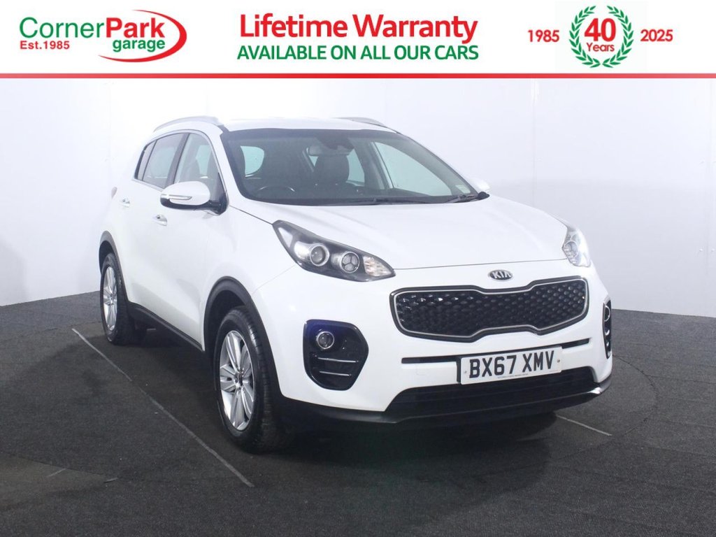 Insurance Group 12, 2 Previous Owners, This 2017 Kia Sportage 1.6 GDi 2 is a practical, wellrounded family SUV that offers good space and reliability at a competitive price. Finished in Fusion White with 17inch alloy wheels, chrome grille surround, roof rails and black wheel arch mouldings, it has a clean, modern appearance suitable for both town and motorway use. The 1.6 GDi petrol engine (130 bhp) with 6speed manual gearbox delivers smooth, flexible performance with an official combined MPG of 44.8. Inside, the 2 trim level provides a comfortable cabin with dual automatic air conditioning, electrically folding/heated door mirrors with LED indicators, front fog lights and plenty of storage including illuminated glovebox, door pockets and centre console box. The 7inch touchscreen satnav with European mapping, Traffic Message Channel, Apple CarPlay/Android Auto, DAB radio, Bluetooth with voice recognition/music streaming and 6speaker system covers infotainment needs effectively. Rear parking sensors and a reversing camera integrated into the nav screen aid manoeuvring. Safety and assistance features are generous, including Lane Keep Assist (LKAS), High Beam Assist, Speed Limit Information Function (SLIF), HillStart Assist Control (HAC), Electronic Stability Control (ESC) with Trailer Stability Assist (TSA), full airbag package with front passenger cutoff and ISOFIX points. With 60:40 splitfolding rear seats, 7year Kia warranty (subject to mileage limits) and strong 44.8mpg combined economy, this Sportage 1.6 GDi 2 represents excellent value for buyers seeking a spacious, wellequipped SUV. All our cars are put through strict quality checks, and this one passed them all. For added peace of mind, we will ensure this will have a minimum of 6 months MOT where applicable. Our quality standards extend to your vehicle ownership. Finance is quick and easy, with a multitude of finance options, we can provide a deal tailored to suit you. Delivery available, all our cars are available online or in store, and any car can be delivered straight to your front door, or to your nearest branch. This car has been pricechecked against the competition, and will be the cheapest available, or we will refund the difference! See website for terms. Search Corner Park to find us. We are based in the heart of South Wales, Swansea (M4 J42). Pop in or give us a call today!.12V Power Sockets Front and Rear Consoles, 17in Alloy Wheels, 3 x Passenger Assist Grips, 6Speaker System, 6040 Split Folding 2nd Row Seats, 7in Touchscreen Satellite Navigation with European Mapping with Traffic Message Channel TMC, Advanced AntiTheft System including Immobiliser and Alarm, AllRound 3Point Seatbelts, AllRound Electric Windows with Drivers Auto UpDown Function, AllRound Height Adjustable Headrests, AntiLock Braking System ABS with Electronic Brakeforce Distribution EBD, Apple CarPlay and Android Auto, Auto Dimming RearView Mirror, Automatic Headlight Control, Automatic Windscreen DeFog, Black Side Sill and Wheel Arch Body Mouldings, Bluetooth with Voice Recognition and Music Streaming, Body Coloured Door Mirrors, Body Coloured Exterior Door Handles with Chrome Insert, Centre Cabin Light, Centre Console Storage Box, Child Safety Rear Door Locks, Chrome Beltline Mouldings, Chrome Front Grille Surround, Coat Hooks Rear, Cruise Control with Speed Limiter, Cupholders in Rear Armrest, DAB Radio with MP3 Compatibility, Digital Clock, Door Deadlocks, Driver and Passenger Sunvisors with Vanity Mirror and Illumination, Drivers Seat Height Adjuster, Drivers Seat Power Lumbar Support, Drivers Wide View Door Mirror, Dual Automatic Air Conditioning, EcoDynamics Badge, Electrically FoldingAdjustable and Heated Door Mirrors with LED Indicators, Electronic Stability Control ESC with Downhill Brake Control DBC, Emergency Stop Signalling ESS, Front and Rear Centre Armrests, Front and Rear Door Storage, Front Cabin Map Light, Front Door Courtesy Reflectors, Front Fog Lights, Front Passenger Airbag Cut Off Switch, Front Seatback Pockets, Front Seatbelt Height Adjusters, Fusion White, Gear Shift Indicator, Glovebox with Illumination, Head Rests Front Active, Headlights High Beam Assist HBA, High Gloss Black Diamond Mesh Radiator Grille, HillStart Assist Control HAC, Ignition Keyhole Illumination, Impact Sensing Auto Door Unlocking, Interior Door LockUnlock Function, ISOFIX Child Seat Top Tethers and Anchor Fixings, Kia Connected Services Featuring TomTom Traffic Speed Cameras Local Search and Weather Updates, Lane Keep Assist System LKAS, Leather Trimmed Door Armrests, Leather Trimmed Gear Shift, Leather Trimmed Steering Wheel, LED Daytime Running Lights, Light Grey Headlining, Locking Wheel Nuts, Luggage Area Light, Luggage Area Load Cover, Luggage Net Hooks, Manual Headlight Levelling Device, Metallic Finish Cen