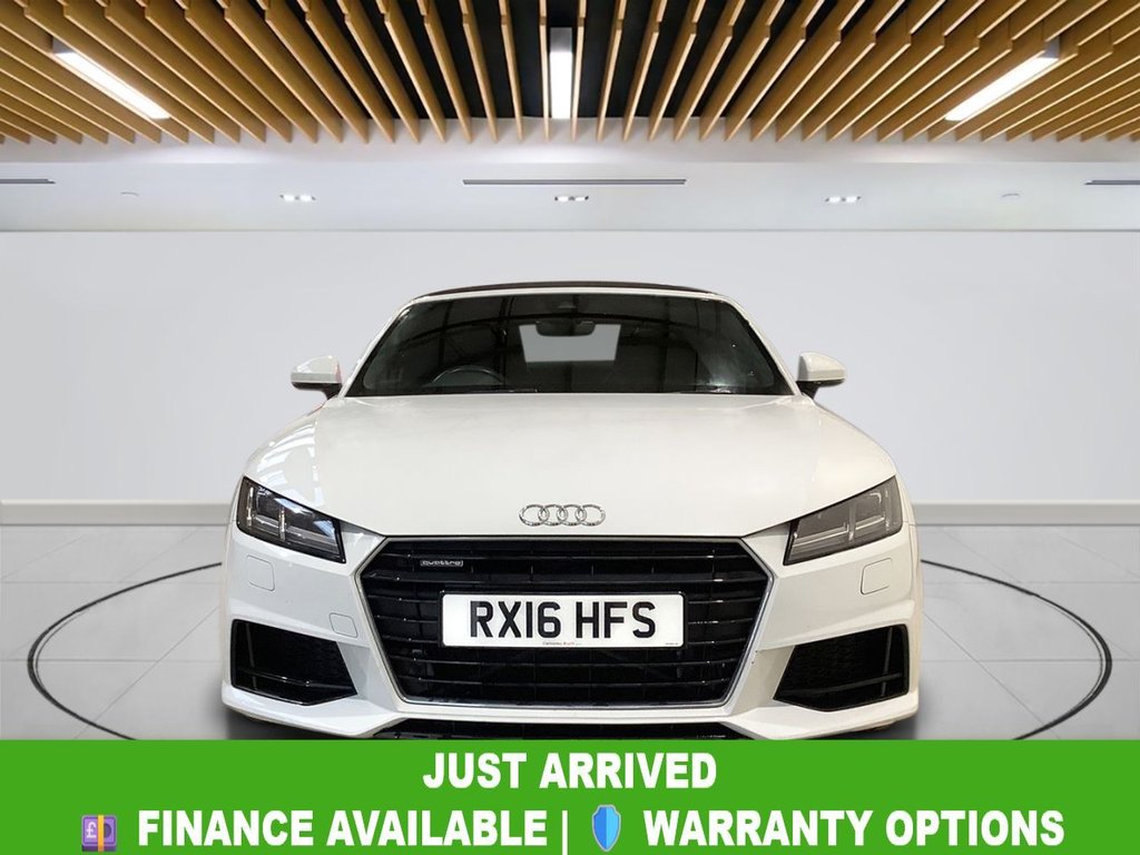 Milton Keynes2 Previous Owners, Why This Audi TT Wins? This 2016 Audi TT TFSI S line is a remarkable example of a sporty coupe, with exceptionally low mileage of just 33,800 miles. Powered by a responsive 2.0litre Euro 6 petrol engine and featuring Audis renowned fourwheeldrive system, it offers a dynamic yet controlled driving experience. With its last service completed on 2nd February 2026 at 33,800 miles, this TT has been meticulously maintained and is ready to deliver both performance and confidence to its next owner. The S line trim enhances the TTs sporty character, providing a stylish and refined cabin along with sharp handling. Acceleration from 060 mph in just 5.4 seconds highlights its impressive performance, making it a thrilling drive whether on winding roads or the open motorway. This combination of low mileage, maintained condition, and exhilarating driving dynamics sets this Audi TT apart from others in its class. Your Peace of Mind? Clear vehicle history check Optional 336month extendable warranties Free 12month AA roadside assistance Fully prepared to showroom standard with its existing MOT and servicing, and we can organise any further MOT or service enhancements at your request. Drive Away, Insurance Available No hidden or extra costs, like admin fees Autotraders 2024 Insights: Top 3 Audi TT Buyer Priorities: Engaging, sporty driving experience Low mileage and excellent condition Premium interior quality and stylish design This TT delivers across all these priorities — offering exhilarating performance, a wellcaredfor history, and a refined, sporty interior, making it an outstanding choice for drivers seeking a premium coupe with real character. StressFree Next Steps: Free Part Exchange Valuation £0 Deposit Car Finance Includes free credit checker Reserve for £99 Fully refundable.12V Power Socket, 2 x SDXC Card Readers, AMI Audi Music Interface, Audi Virtual Cockpit 12.3in High Resolution LCD Display, Bluetooth Audio Streaming, DAB Digital Radio, FMAM Radio, Google Earth Images and Google Street View, MMI Radio, Mobile Telephone Preparation Bluetooth Interface, Seat Belt Microphone, Speakers x4 Front Passive, USB Connection, iPod Connection, 19in Alloy Wheels 5Arm Star Design, Acoustic Hood Fully Automatic, Anti Theft Locking Wheel Bolts, Black Hood, Body Coloured Door Mirrors, Brake Lights LED, Bumpers Front and Rear S Line Design, Diffuser Rear Platinum Grey Insert S Line Design, Door Mirrors Builtin LED Side Indicators, Door Mirrors Electrically Adjustable and Heated, Dynamic LED Indicators Rear, Electric Windows Front, Light and Rain Sensor Package, Radiator Grille High Gloss Black, S Line Badge on the Steering Wheel, S Line Badges on the Front Wings, S Line Body Styling, Side Sills S Line, Spoiler Retractable, Sunband for Windscreen, Tyre Repair Kit, Air Conditioning, Automatic Wipers with Rain Sensor, Car Jack, Door Sill Trims, Door Sill Trims with S Line Logo, Door Trim Inserts Alcantara, Electrically Adjustable 4Way Lumbar Support, Extended Aluminium Look in Interior, Front Sports Seats, Gear Knob Perforated Leather Black, Gear Knob Silver Stitching, Headlining Black, Inlays Matt Brushed Aluminium, Integrated Head Restraints, Keyless Go, Manual Front Seat Adjustment, NonSmoking Package, Pedals in Stainless Steel, Pollen Filter, Seat Side Bolsters in Leather, Seats Constrasting Silver Stitching on Upholstery, Steering Wheel 3Spoke LeatherMultifunctionFlat Bottomed, Steering Wheel Gear Shift Paddles, Steering Wheel Height and Reach Adjustable, Steering Wheel Multifunction, Steering Wheel Silver Contrast Stitching, Steering Wheel Sports, TP Memo Automatically Saves Traffic News, Tool Kit, Glacier White, All Weather LED Headlights, Headlights Automatic Range Adjustment, Headlights ComingLeaving Home Function, Headlights Light Sensor, Headlights Washers, LED Daytime Running Lights, LED Rear Lights, Progressive Steering, Hold Assist, ABS AntiLock Braking System, Airbags Driver, Airbags Front Passenger, Airbags Front Side System, Airbags Head System, AntiTheft Alarm, Audi Active Lane Assist, Audi Drive Select, ESP Electronic Stability Programme, Electromechanical Parking Brake, First Aid Kit, Front Passenger Airbag Deactivation Switch,
