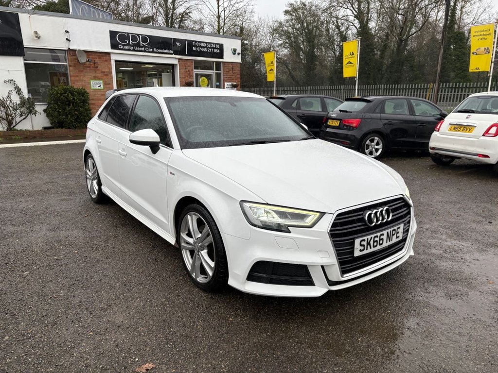 St. Neots2 Previous Owners, A SUPERB EXAMPLE WITH LOW MILEAGE AND SERVICE HISTORY. FINISHED IN WHITE, THIS CAR COMES WITH FEATURES INCLUDING SATELLITE NAVIGATION, SLINE EMBOSSED PART LEATHER TRIM, DUAL CLIMATE CONTROL, BLUETOOTH HANDSFREE, DAB DIGITAL RADIO WITH USB, AUX POINT AND BLUETOOTH MEDIA CONNECTIVITY, A FLAT BOTTOM LEATHER SLING SPORTS STEERING WHEEL, CRUISE CONTROL, AUTO LIGHTS AND WIPERS, 18" ALLOY WHEELS, A 6 SPEED MANUAL GEARBOX, 4 X ELECTRIC WINDOWS, REMOTE CENTRAL LOCKING AND ELECTRIC MIRRORS. WE OFFER FINANCE, PART EXCHANGE AND EXTENDED WARRANTY ON ANY CAR. ALL OUR AA APPROVED VEHICLES COME WITH 12 MONTHS FREE BREAKDOWN COVER. VIDEO TOURS, ON LINE ORDERING AND DELIVERY OPTIONS CURRENTLY AVAILABLE. WE ARE OPEN 7 DAYS A WEEK. OUR HOURS ARE 9.00AM 5.00 PM MONDAY TO FRIDAY, 9AM 4.30PM SATURDAY AND SUNDAY BY APPOINTMENT. OUT OF HOURS WE ARE AVAILABLE ON TELEPHONE OR EMAIL. PLEASE CALL HARRY, GRAHAM OR TINA FOR FURTHER DETAILS OR TO ARRANGE A TEST DRIVE..18in Alloy Wheels 5Parallel Spoke Design with Diamond Cut Finish, 2 x USB Charging Ports and 1 x AUXIN, 6Airbag System with Knee Airbag for Driver, 8 Passive Speakers, Aluminium Interior Elements, Aluminium Window Trims, Anti Theft Locking Wheel Bolts, AntiTheft Alarm, Audi Connect Infotainment Services 3 Month Trial, Audi Drive Select, Audi Smartphone Interface, Bluetooth Interface, Body Coloured Door Mirrors, CD Drive, ChromePlated Exhaust Tailpipe Trim, Cloth Headlining in Black, Colour Drivers Information System DIS, Cruise Control, DAB Digital Radio, Door Mirrors Electrically Adjustable and Heated, DualZone Electronic Climate Control, ESC Electronic Stabilisation Control inc ABS ASR and EDL, Electric Windows Front and Rear, Electromechanical Parking Brake, Electromechanical Power Steering, First Aid Kit, Front Centre Armrest, Front and Rear Floor Mats, ISOFIX Child Seat Mounting and Top Tether for Front Passenger and Outer Rear Seats, Illuminated Door Sill Trims with S Logo, Immobiliser, Inlays Matt Brushed Aluminium, LED Headlights with LED Rear Lights and Dynamic Rear Indicators, LED Interior Light Package, Light and Rain Sensor, Luggage Compartment Lashing Points x4, MMI Navigation SD Card Based, MMI Radio Plus with 7in Electrically Retractable Colour MMI Screen, Manual Front Seat Adjustment, NonSmoking Package, Pedals in Stainless Steel, Pollen Filter, Remote Central Locking with 2 Fold Away Keys, S Line Design Body Styling, S Line Roof Spoiler, Seat Belt Monitoring, Seats Split Folding Rear 6040, Space Saver Spare Wheel, Sport Suspension, Steering Wheel 3Spoke LeatherMultifunctionFlat Bottomed, Storage Compartments in the Door Side TrimsCentre ConsoleUnder Drivers Seat, Storage Package, Tool Kit and Car Jack, Tyre Pressure Monitoring System, Voice Control, Warning Triangle