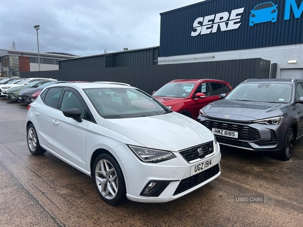Insurance Group 12, 1 Previous Owner, The SEAT IBIZA 1.0 TSI 110 FR [EZ] manual offers a wellbalanced combination of practicality and comfort, making it suitable for a wide range of drivers. With a recorded mileage of 30,700 miles, this vehicle has been gently used, reflecting the care given during its previous ownership. The petrol engine, paired with a manual gearbox, delivers a responsive and engaging driving experience. A selection of features such as automatic headlights, rain sensing wipers, and cruise control contribute to a relaxed and convenient journey.The car is equipped with a 110 bhp engine and a top speed of 121 mph, ensuring smooth and assured performance, whether navigating urban streets or longer motorway routes. Although the 060 mph time is 10.2 seconds, the vehicle's SEAT Drive profile allows for tailored driving settings to match individual preferences.A contemporary design is evident through the white paintwork, body colour bumpers, and chrome accents on the front grille. Brilliant black door mirrors and window surrounds add further distinction, while the exclusive FR rear bumper and rear spoiler with twin exhausts provide a dynamic appearance. LED headlights, daytime running lights, and dark tinted rear windows complete the modern exterior, complemented by an interior featuring Nora cloth upholstery, sports seats, and a pearl grey headlining.Specification highlights include Full Link Smartphone Integration supporting Apple CarPlay and Android Auto, an 8inch navigation touch screen with voice control, and Bluetooth audio streaming with handsfree capability. Additional amenities such as dual zone climate control, ambient interior lighting, a leather multifunction steering wheel, and front and rear electric windows underscore the vehicle's comfort. Safety is supported by features including ESP with EBA, curtain and side airbags, ISOFIX child seat attachments, and advanced systems such as MultiCollision braking and a perimeter alarm with interior monitoring
