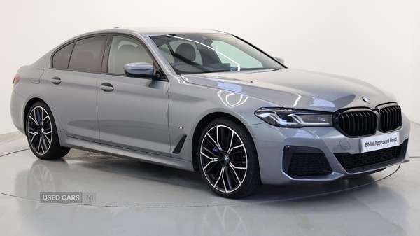 Coleraine1 Previous Owner, This 2023 BMW 5 Series 520d M Sport offers a refined driving experience with its efficient 2.0L Diesel Hybrid engine, meeting Euro 6 emission standards. Finished in the sporty M Sport trim, this model comes equipped with advanced Parking Assistant features, including front and rear sensors and a rear camera, making manoeuvring effortless. Additionally, the Sun Protection Glass provides a more comfortable and private cabin environment.The generous boot space in this 5 Series ensures practicality for all your needs, whether it's for daily errands or longer journeys. The combination of its powerful yet economical hybrid powertrain, sophisticated M Sport styling, and intelligent driver assistance systems positions this BMW 520d M Sport as a superior choice for those seeking a blend of performance, comfort, and advanced technology in a premium saloon. Mild Hybrid Technology, Alarm System, Sensatec Dashboard, Aluminium Rhombicle with Pearl Chrome In, Ext. mirrors folding with antidazzle, Ambient Lighting, Sport seats, Front Lumbar Support, Heated front seats, Active Guard, Parking Assistant, Automatic Air Conditioning, BMW Emergency Call, BMW TeleServices, BMW Online Services, Connected Package Pro (limited duration), Live Cockpit Professional, DAB Radio, M Sport Suspension, M Sport Exterior Styling, Highgloss Shadowline Exterior Trim, Anthracite Headlining, Active Pedestrian Safety, M Sport Package, 20'' 846 M Yspoke Bicolour Jet Black wi, M Sport Brakes with Blue Calipers, Auto transmission with gearshift paddles, Runflat Tyres, BMW Individual Lights Shadow Line, M Sport Seat Belts, Sun Protection Glass, Deletion of the passenger side lumbar su, HighBeam Assistant, Adaptive LED Headlights, Harman/Kardon Surround Sound Audio, Indv. highgloss shadowline extended, M Sport Spoiler, Special Steering Bluetooth Wifi, M Sport Pro Pack, M Sport Pro Pack. Grey 5 seats. BMW Approved Used Car