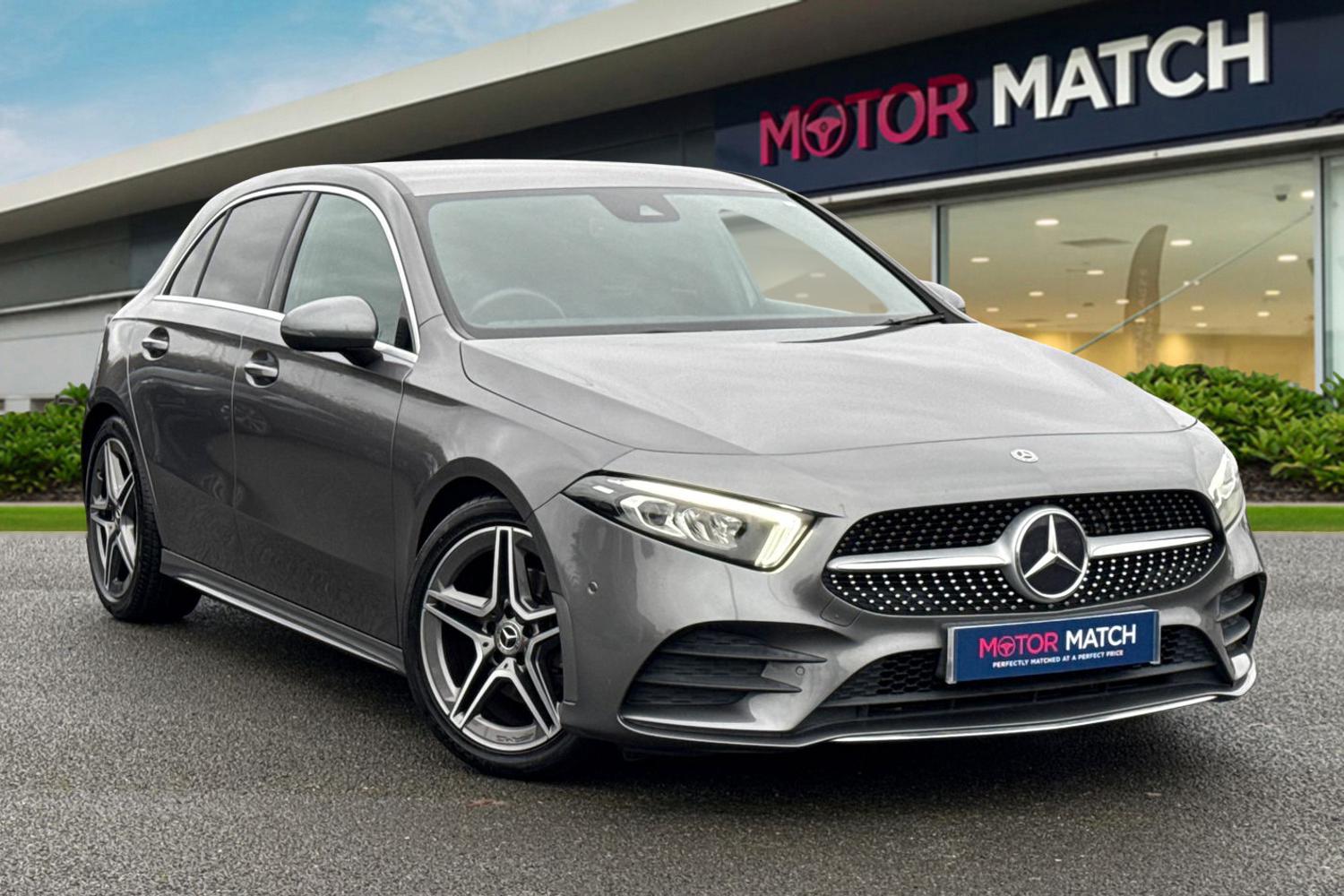 Chester1 Previous Owner, Available now from Motor Match Chester, with an excellent service history present, serviced at 6498, 18075, 24823, 28932 and 33329 miles. This brilliant MercedesBenz A Class A200 AMG Line Executive comes finished in the stunning Mountain Grey metallic paint, which looks fantastic paired with the 18in AMG 5spoke alloy wheels. At the front of the vehicle youll find the automatic LED headlights and rainsensing wipers, offering superb visibility. The A Class also benefits from electrically adjustable and heated door mirrors. The interior offers plush partleather upholstery, with sports seats offering excellent support. Manual seat adjustment is provided, and Isofix mounting points can be found on the outer rear seats. The A Class hatchback is plenty spacious throughout, offering plenty of legroom for passengers, and a roomy boot too. The front seats are heated, and dualzone climate control is also provided to keep all passengers comfortable. This Mercedes also boasts an amazing media system, providing access to DAB radio, Bluetooth interface and USB connectivity, so youve got plenty of choice when it comes to music. Youve also got the reliable satellite navigation system on board, allowing you to plan routes and check out nearby amenities! This car is equipped with cruise control and speed limiter which come in handy for motorway drives, while the front and rear parking sensors, and rear view camera, alert you to any obstructions when reversing! This vehicle is c...