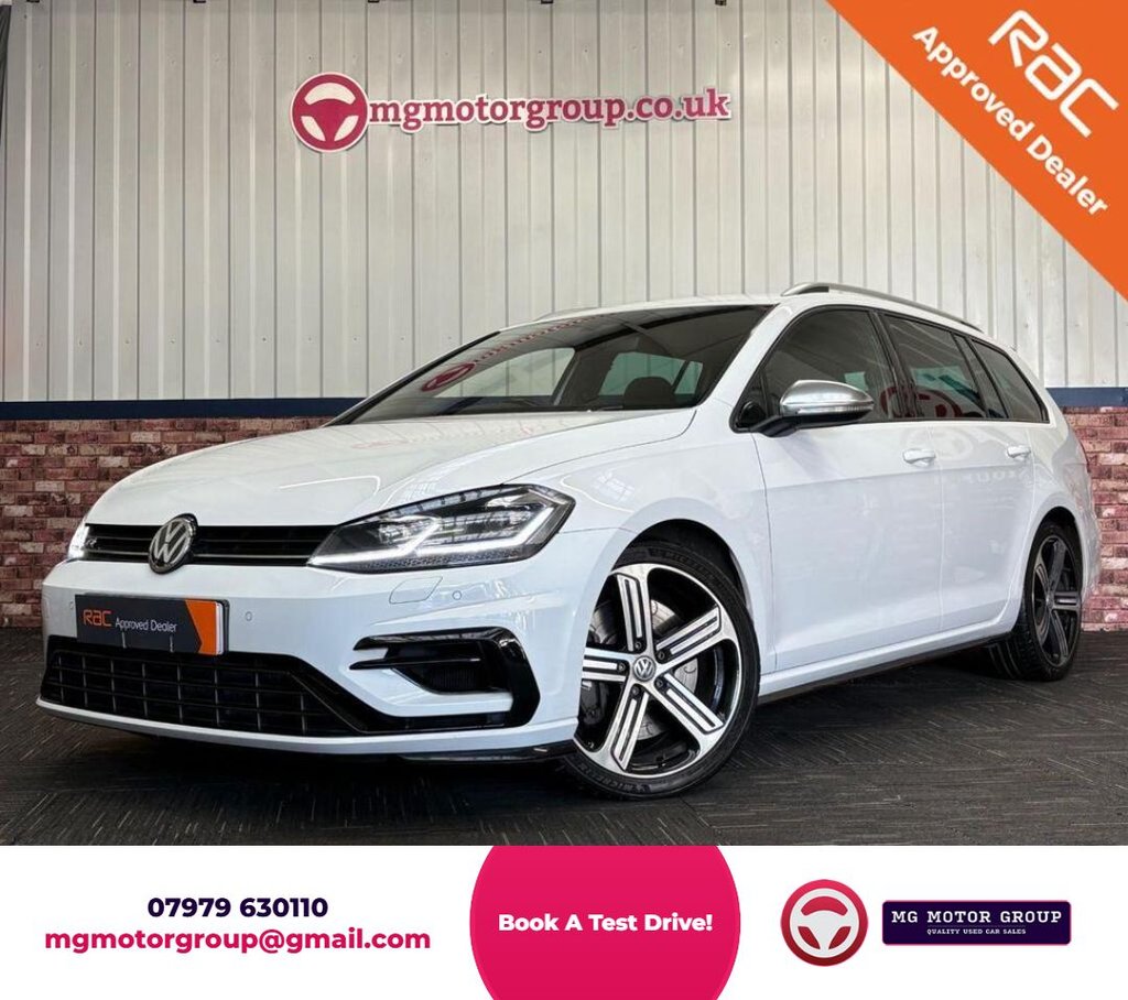 Stockton-On-Tees1 Previous Owner, MG Motor Group are pleased to offer this stunning 2018 Volkswagen Golf 2.0 TSI R Estate finished in Pure White with Black Cloth interior, backed with excellent service history and 2 keys. Excellent condition throughout and a true credit to its previous owners. This 2018 Volkswagen Golf 2.0 TSI R Estate is equipped with 18 inch Cadiz Alloy Wheels, Front & Rear Parking Sensors, Adaptive Cruise Control, Smartphone Integration, Sat Nav, DAB Radio, Front Heated Seats, Power Folding Mirrors, Rear Privacy Tints and much more! The performance of this Volkswagen Golf R is truly impressive, with its quick acceleration and advanced 4Motion allwheeldrive system delivering outstanding grip and confidence in all conditions. The combination of dynamic performance, cuttingedge technology, and everyday practicality makes this Golf R a compelling choice for those seeking a refined yet highly engaging driving experience. As an estate model, it also offers the added benefit of enhanced practicality. The larger boot capacity and extended load space provide exceptional versatility, making it ideal for family life, longdistance travel, or transporting larger items — all without compromising the thrilling performance the Golf R is known for. We offer complete peace of mind with this vehicle, supplied with 12 months MOT, a recent inhouse service, and a full HPI check for your assurance. Here at MG Motor Group, we are approved and backed by the RAC and prepare our cars to the highest of standards including an 82 point check. All of our cars come with a minimum of 9 Months MOT with all advisories rectified, 6 months warranty cover with 12 months RAC breakdown cover, Health check upon purchase. We offer great finance options for all types of credit. Give us a call today on 01642307737 or 07979630110. We are a family run business who pride ourselves in putting customers first so we look forward to seeing you enjoy your new vehicle. We encourage our customers to doublecheck key specifications prior to making a purchase, as while we strive for accuracy through manufacturer checks, HPI data, and appraisals, human errors can occasionally occur. Unfortunately, any discrepancies identified after the sale cannot be corrected..Heated Seats, Smartphone Integration, Front and Rear Parking Sensors, Sat Nav, Rear Privacy Tints, Race ClothArt Velour Titan Black, LED Headlights with Dynamic Light Assist, Pure White, 12V Socket Luggage Compartment, 18in Alloy Wheels Cadiz, ABS AntiLock Braking System with HBA Hydraulic Brake Assist, Active Info Display, Adaptive Cruise Control, Airbags, Alarm with Interior Protection, Ambient Lighting, Ambient Lighting Pack, AntiTramp Function, Automatic ComingLeaving Home Lighting Function, Automatic PostCollision Braking System, Bag Hooks in the Luggage Compartment x2, Black Front Air Intake and Radiator Grille with Chrome Trimmed Inserts, Black Rooflining, Body Coloured Bumpers, Body Coloured Door Handles, Brake Calipers Black, Brake Pad Wear Indicator, CarNet App Connect, CarNet Security and Service including eCall, Carbon Touch Decorative Inserts in Dash and Door Panels, Carpet Mats Front and Rear, Child Security Locks in the Rear Doors, Chrome Plated Air Vent Surrounds, Chrome Plated Electric Mirror Adjustment Switch Surround, Chrome Plated Electric Window Button Surrounds, ChromePlated Light Switch Surround, Climate Control, Composition Media System, Convenience Pack, Cover for Storage Compartment in Centre Console, Cup Holders Front x2, Discover Navigation TouchScreen NavigationRadio System with CarNet Guide and Inform, Driver Alert System, Driver Personalisation Profile, Drivers and Passengers Safety Optimised Head Restraints, Driving Mode Selection, Dusk Sensor Automatic Driving Lights, Dust and Pollen Filter, ESC Electronic Stability Control including EDL Electronic Differential Lock and ASR Traction Control, Electric Windows Front and Rear, Electronic Engine Immobiliser, Electronic Parking Brake with Auto Hold Function, Extended Sill Strips Flared, Extending Luggage Compartment Cover with Convenience Opening Stowable, Front Assist, Front Centre Armrest with Storage Compartment and Two Rear Air Vents, Front Footwell Illumination, Front Seat Back Storage Pockets, Front Sport Seats with Height and Lumbar Adjustment, Front Sports Seats with Embroidered R Logo, Galvanised Body, Glovebox Cooled, Grab Handles Front x2 Rear x2 with Coat Hooks, Headlight Washer System, Heated Front Seats, Heated Rear Windscreen, Heated Windscreen Washer Jets, HeightAdjustable Front ThreePoint Seat Belts with Tensioners, High Level 3rd Brake Light Incorporating LED Technology, ISOFIX Child Seat Preparation for 2 Rear Seats