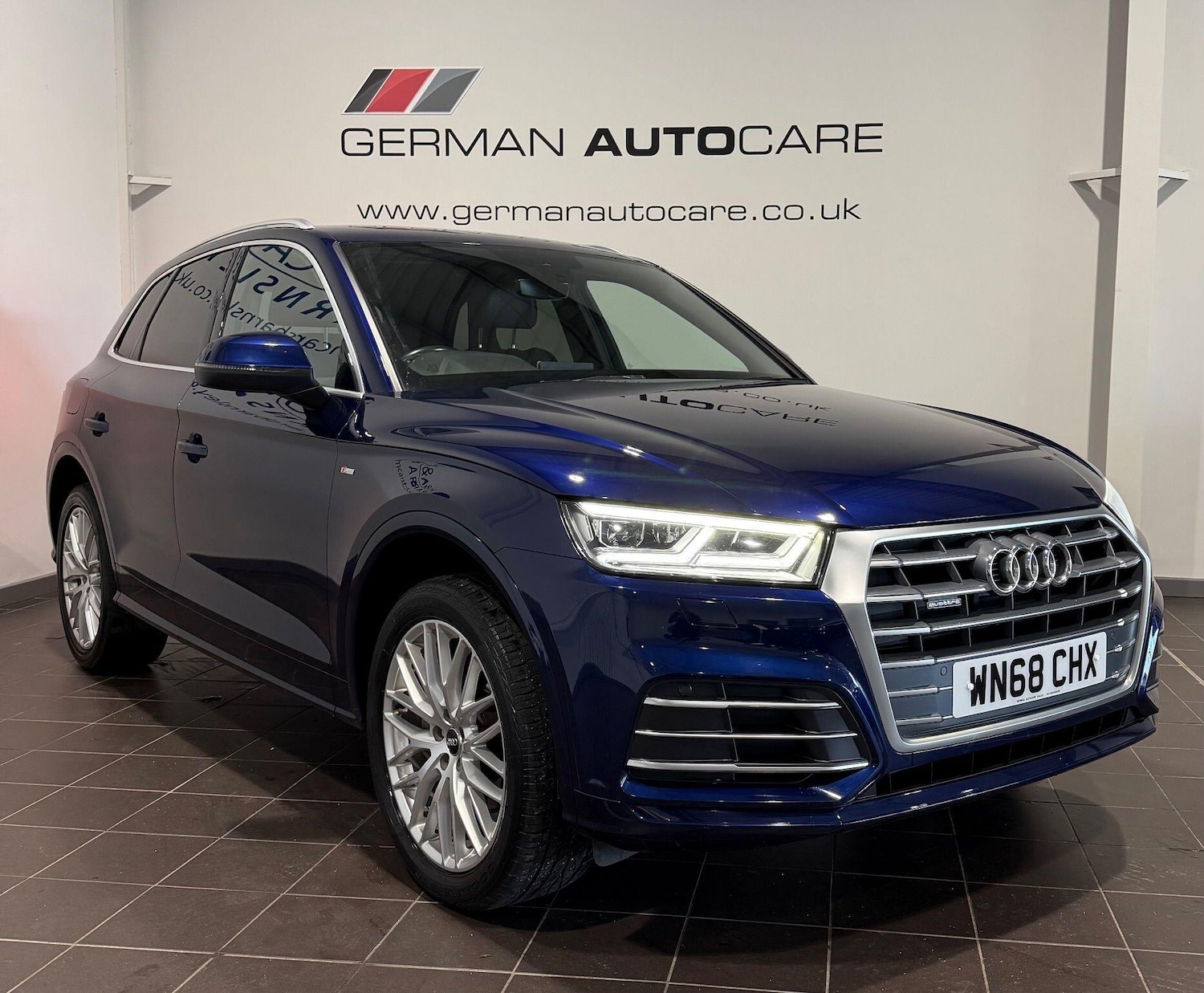 Barnsley1 Previous Owner, ** SERVICE AND MOT COMPLETED BEFORE HANDOVER**German Autocare and H and M Cars Barnsley Approved VehicleThis 2018 Audi Q5 TFSI S line offers a compelling blend of performance and practicality. As a Euro 6 compliant model, it features a robust 2.0 litre petrol engine paired with Audi's renowned four wheel drive system, ensuring confident handling in various conditions. The S line trim enhances its appeal with a sporty aesthetic and a suite of desirable features. Inside, you'll find the convenience of the Audi Parking System Plus, complete with front and rear sensors, and the comfort of heated front seats. Stay connected effortlessly with the Bluetooth interface, and enjoy a personalised cabin environment thanks to the Deluxe 3 Zone Climate Control. The Light and Rain Sensor automatically manages headlights, adding to the ease of driving.The Audi Q5 TFSI S line stands out with its impressive acceleration, reaching 062mph in a swift 6.3 seconds, demonstrating its dynamic capabilities. This performance, combined with a substantial towing weight of 2400 kg, makes it a versatile choice for those needing to transport goods or leisure equipment. Furthermore, the generous boot space provides ample room for luggage, shopping, or sports gear, making it an ideal companion for both daily commutes and longer journeys. These attributes collectively position this Q5 as a superior option within its class.