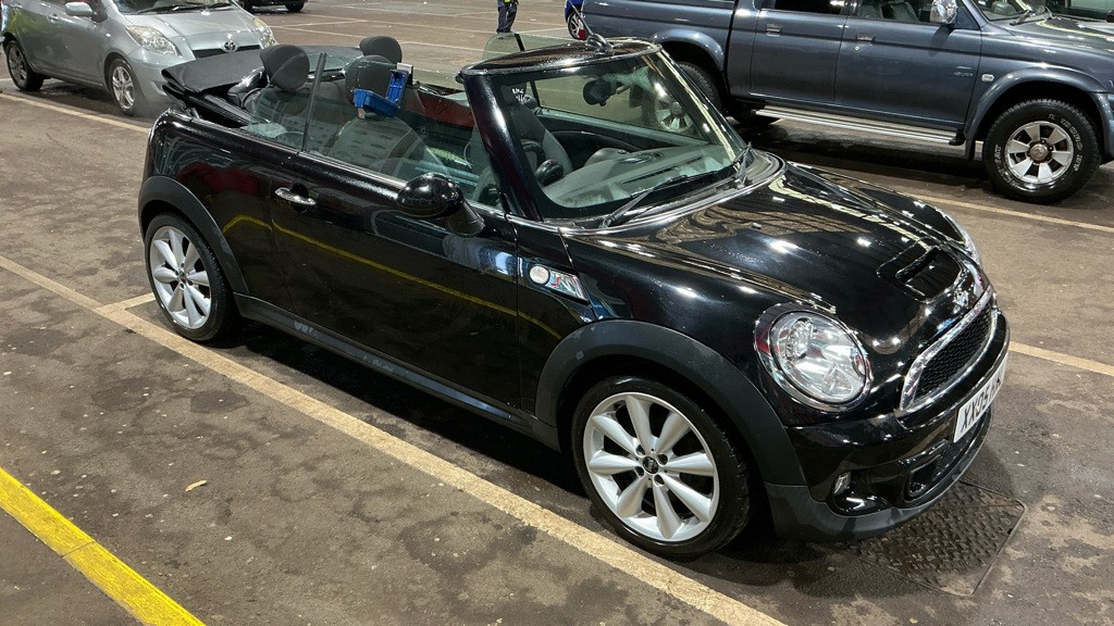 SevenoaksFull Service History, DUE IN MORE MINI's ON OUR WEB SITE www.emcmsales.co.uk OVER £4800 of MINI EXTRAS RARE BLACK EDITION Boasting exceptionally low mileage for its age, this 2012 MINI Convertible Cooper Black S is a rare find. With only 3 owners and a full service history, including its last service on 5th November 2025 at 39,542 miles, this vehicle has been meticulously maintained. The 1.6L petrol engine offers an engaging driving experience, complemented by desirable features such as BiXenon headlights, the CHILI Pack, and Bluetooth telephone and audio connectivity. Practicality is enhanced with rear Park Distance Control, and the interior is finished with stylish ClothLeather Ray in Carbon Black. This MINI Convertible Cooper S is ready for its next adventure, coming with 12 months MOT provided on purchase and a 3 month warranty for your peace of mind. Its fuel economy of 47 mpg is a significant highlight, demonstrating its efficiency compared to similar vehicles. Furthermore, its low CO2 emissions contribute to a more environmentally conscious drive. With a very low mileage of just 39,838 miles, this car represents excellent value and is sure to be a joy to own and drive.
