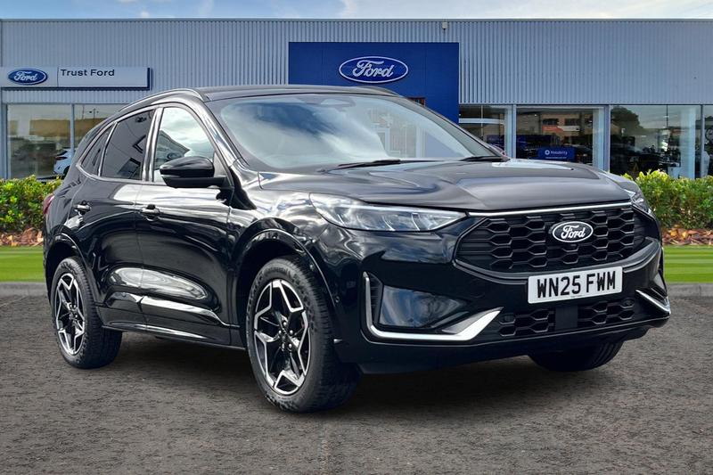Wimbledon12.3 digital colour instrument cluster, 360 degree view camera, Clear exit assist, Cross traffic alert with active braking, eCall (emergency call), Ford easy fuel, Ford SYNC 4 Navigation with 13 touchscreen, DAB radio, emergency assistance, Andriod Auto/Apple CarPlay, 5G modem & Ford Pass connect, Front and rear parking sensors, Hands free power tailgate, Lane centering assist, Lane keeping aid with lane departure warning, Power assist steering, Selectable drive modes, Service interval indicator, Auto headlamps with high and low beam, Black roof rails, Body colour bumpers, Front LED fog lamps, Large rear spoiler, LED daytime running lights, LED rear lights, LED third brake light, Pop out door edge protectors, Power front/rear windows with global close, Power heated folding door mirrors with puddle lights, memory function and camera, Power opening panoramic roof, Quickclear heated windscreen, Rain sensing wipers, Rear privacy glass, Rear side wing doors, Rear wiper, STLine body styling kit, 2nd row sliding seats, Electronic automatic temperature control (EATC), Front and rear head restraints, Partial premium touch sensico upholstery, Rear centre head restraint, Single front passenger seat, Sports seats, 3x3 point rear seatbelts, Airbags front driver/passenger, front and rear curtain, Drivers knee airbag, Dynamic brake support, Electronic stability control (ESC) and ABS, Evasive steering assist, Ford MyKey Gen 2 safety system, Manual child proof rear door locks, Pre