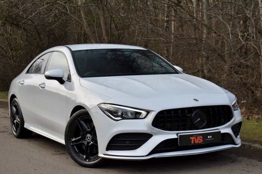 Glasgow2 Previous Owners, 2021 Mercedes CLA 200 AMG Line Premium 2 4 door coupe Automatic Polar White with full black leather interior (heated front seats) 50k miles only 1 former keeper 2 remote keys Mercedes main dealer service history just serviced for sale by independent Mercedes specialist with Mercedes DSR updated fresh 12 months MOT with no advisories Platinum warranty full 12 months AA roadside assistance also included! Night Package! Black Alloy Wheels! CLA 45 AMG Aero rear spoiler! AMG GT grill! Ambient Lighting! Apple CarPlay/Android Auto! Full 12 months MOT Platinum warranty included 12 months AA breakdown cover Autotrader Highly Commended Dealer 2018/19/20 AA Approved Dealer 2017/18/19/20 CarGurus Top Rated Dealer 2018/19/20 We are close to many local bus and train links. The nearest train station is Hairmyres which is on the East Kilbride line, if possible we will collect you if arranged by prior appointment. We have signed up to the AA Dealer Promise which means you are in safe hands dealing with us as an AA partner! All cars are provided with an AA history check, a minimum of 6 months MOT on all cars and 12 months AA breakdown cover or member upgrade as well as other exclusive AA benefits! Finance available?! Longer warranty options available!? Poor Credit No Problem!? Part Exchange welcome with or without MOT?! Credit & Debit Cards accepted?! Price checked to ensure best value!? Over 50 cars in stock!? Over 95% of our customers rate us 5 stars!.Polar White, 18in Alloy Wheels AMG 5TwinSpoke Design Painted Titanium Grey with a HighSheen Finish, ABS AntiLock Braking System with BAS Brake Assist, AMG Bodystyling, ATTENTION Assist Monitors Steering Behaviour and can Help Alert to Long Journey Fatigue, Active Bonnet Pedestrian Safety Measure which Detects an Impact and Raises Bonnet by 65mm, Active Brake ASSIST, Active Lane Keeping Assist, Adaptive Brake Lights, Air Conditioning Air Vents with Surround in Silver Chrome, Air Conditioning THERMOTRONIC Luxury Automatic Climate Control TwoZone with Display, Airbag Kneebag for Driver, Airbags DualStage Driver and Front Passenger, Airbags Head and Sidebags Driver and Front Passenger, Airbags Windowbags for Driver and Front Passenger, Alarm System with Immobiliser and Interior Protection Thatcham Category 1, Automatic Child Seat Recognition Sensor Pressure Sensor, Beltline Strips Chrome, Bonnet with Power Domes, Brake Calipers MercedesBenz Lettering on Front, BrakePad Wear Warning Indicator, Braking Adaptive Brake Assist with HOLD Function and Hill Start Assist, Brushed Stainless Steel Sports Pedals with Rubber Studs, Bumpers Body Coloured, Centre Armrest Front with Stowage, Childproof Locks Manually Operated for Rear Doors and Electrically Operated for Rear Power Windows, Chrome Weather Strip, CrashResponsive Emergency Lighting, Cruise Control with Limiter, DAB Digital Radio Tuner, Diamond Radiator Grille with Pins in Chrome SilverPainted Louvre and Insert in Chrome, DirectSteer Speed Sensitive Steering, Door Handles Body Coloured, Door Mirrors Electrically Adjustable and Heated with Integrated LED Indicators, Door Sills Front Door Sill Panels with MercedesBenz Lettering Illuminated, Dual Bluetooth Interfaces, Dynamic Select with a Choice of Driving Modes ECOComfortSport and Individual, ESP Electronic Stability Programme with ASR Acceleration Skid Control, ESP Curve Dynamic Assist, Electric Parking Brake, Exhaust System 2 Visible Tailpipe Trim Elements and Rear Apron with Trim in Chrome, First Aid Kit and Warning Triangle, Floor Mats with Stitched AMG Lettering, Glass Rear Windscreen Heated with Timer Control, HardDisk Navigation, Headlamp Assist Automatic Headlamp Activation, Headlamps LED High Performance with Integrated LED Daytime Running Lights, Heated Front Seats, Hey Mercedes Voice Activation, High Level Third Brake Light LED, ISOFIX and TopTether Child Seat Fi