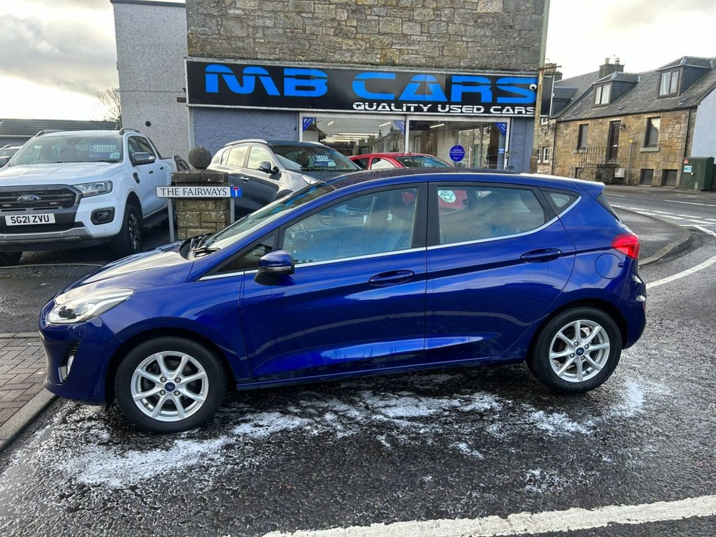 MilnathortInsurance Group 5, 2 Previous Owners, A very low mileage Fiesta finished in blue metallic..15in Alloy Wheels 8 Spoke, 3Spoke Leather Trimmed Steering Wheel with Audio Controls, ABS Antilock Braking System, Air Conditioning Manual, Airbags Driver, Airbags Front and Rear Side Curtain, Airbags Front Passenger, Airbags Side Curtain, Airbags Side Impact, Body Coloured Electrically Operated Door Mirrors with Integrated Side Indicators, Centre Console with Two Cupholders and 12V Power Point, Chrome Belt Line Finisher, Chrome Upper Grille, Courtesy Light Front Map Light and Rear Overhead LED, Door Handles Body Colour, Door Lever Chrome Finish, EBD Electronic Brakeforce Distribution, ElectricallyOperated Front Windows with One Touch Drivers, Electronic Stability Control ESC with Traction Control and Emergency Brake Assist EBA, Electronic Stability Programme ESP with Hill Start Assist, Ford DAB Radio with Ford SYNC3 Apple Car Play and Android Auto, Ford Easy Fuel System, Front Bumper Body Colour, Front Fog Lamps with Cornering Lights, Gearshift Knob LeatherTrimmed, Glovebox Illuminated, Headlights Automatic OnOff, Headlights Halogen Projector with Black Bezel and Dedicated LED Daytime Running Lights, Headliner Woven, IPS Intelligent Protection System, LeatherTrimmed Handbrake, Manual Drivers Seat Height Adjustment, MyKey, NCAP Pack, Overhead Console Sunglasses Holder, Power Steering, Quickclear Heated Windscreen, Rear Bumper Body Coloured Upper and Self Colour Lower, Rear Fog Lamps, Rear Seat 6040 Split Back and Cushion, Rear Spoiler Body Colour, Remote Central Locking and Engine Immobiliser, Seats Front Comfort Style, Steering Column Rake and Reach Adjustment, Tailgate WashWipe, Thatcham Alarm, Trip Computer, Tyre Pressure Monitoring System TPMS, Tyre Repair Kit, Warning Triangle Storage, Wipers Standard with 6 Speed Interval Settings