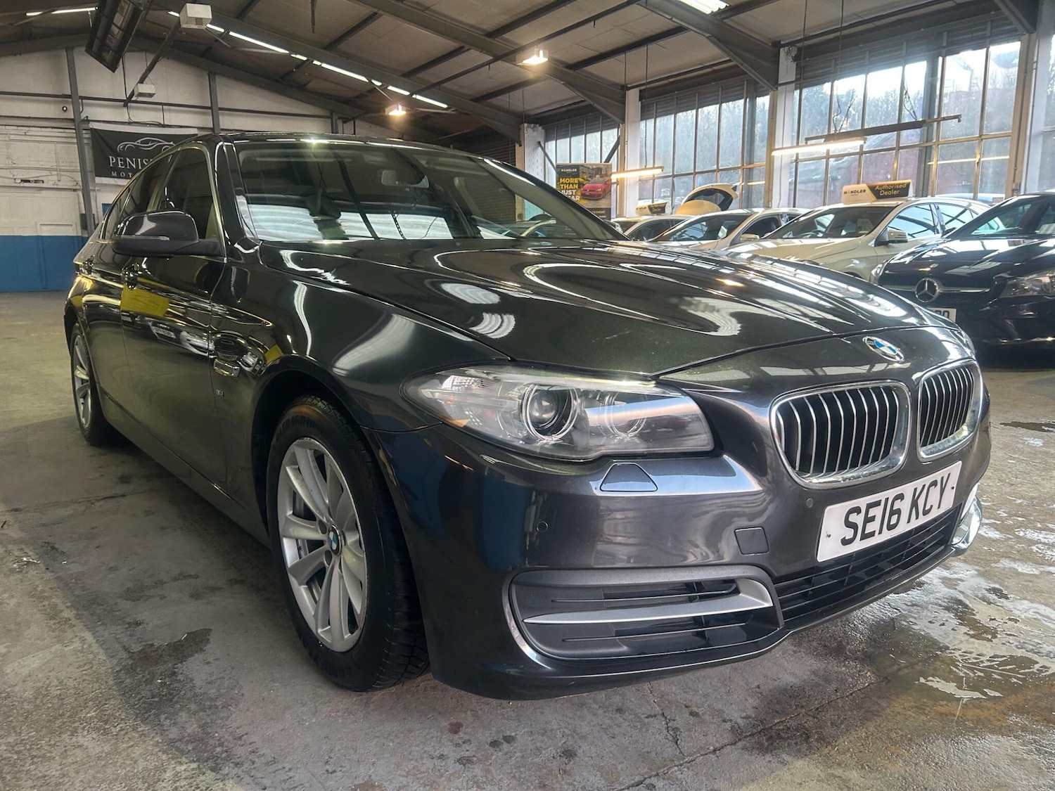This 2016 BMW 5 Series 520d SE offers an exceptional blend of efficiency and refinement, boasting a remarkable 69 mpg fuel economy. This Euro 6 compliant model features a smooth 2.0L diesel engine and comes equipped with the desirable SE trim. Notable features include striking High Gloss Shadowline exterior trim, automatic dual zone climate control for personalised comfort, and front and rear Park Distance Control with parking assistance sensors to aid manoeuvring. Stay connected on the go with the integrated Bluetooth hands free facility, and enjoy the convenience of automatic headlights.The generous boot space provides ample room for luggage or shopping, making this 5 Series a practical choice for everyday use and longer journeys. Its low CO2 emissions further highlight its efficiency, indicating it is a more environmentally conscious option compared to many similar vehicles. This BMW 5 Series 520d SE represents a smart and sophisticated motoring experience.