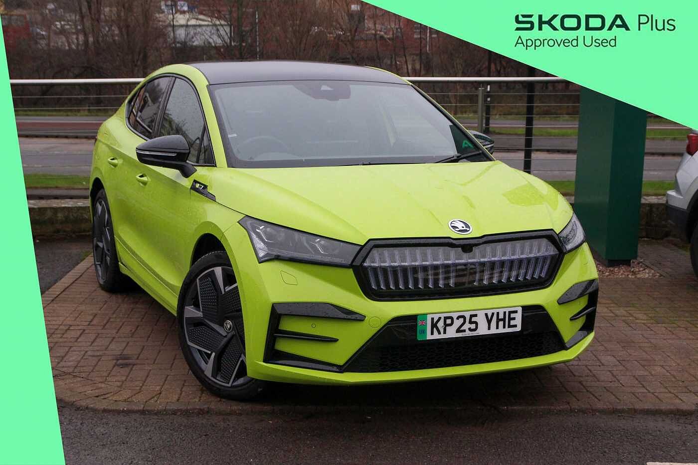 Sheffield0 Previous Owners, 13" touchscreen display, Adaptive Cruise Control with traffic jam assist, Blind Spot Detection (BAS), Bluetooth system, Digital cockpit, Drive mode selector, Driver alert system, Ecall, Electrically operated tailgate with kick activation (virtual pedal), Electronic engine sound, Exterior temperature indicator, Front and rear parking sensors, Gesture control, Progressive steering, Rear view camera, Satellite navigation system, Skoda Connect iV remote services with charging, air conditioning and smart schedules, Speed assist, Speed limiter, Tailgate unlocking from outside, Traffic sign recognition, Travel assist with emergency assist, lane assist plus with narrow lane assist and urban evasive steering support, Voice control system, Washer fluid level indicator, WiFi hotspot, Wireless charging with cooling function, Wireless smartlink, 175 kW DC charging, 6m mode 3 cable (32A), Four wheel drive, Shock absorption in front, Shock absorption in rear, 8 Speakers, DAB Digital radio, USBC ports (charging + data) front and rear, Auto dimming rear view mirror, Black decorative trims (including window and grille surround), Body colour bumpers, Body colour door mirrors and handles, Body colour door sills, Chrome side window surrounds, Crystal face, Dashboard and door moulding light in multiple colours, Door mirror memory, Dynamic headlight range control with cornering light function, Electric adjustable heated folding door mirrors with boarding spots and welcome logo, Electric front and rear windows, Front fog lights, Full LED Matrix beam headlights with variable light distribution, Full LED rear lights with variable lighting functions, Headlight washers, Heat insulating darkened glass in side and rear windows, Heat insulating glass in windshield, Heated rear window, LED daytime running lights, LED third brake light, Light assistant (coming home/tunnel light), Panoramic sunroof, Privacy glass and acoustic side windows, Radiator grille in gloss black, Rain and light sensors, Rear side wing doors, Safety reflectors on front and rear doors, Skoda lettering on tailgate in black, Tow bar preparation, vRS sports bumpers, 12V socket in boot, 1x umbrella, 3 rear headrests, 3 seat bench in 2nd row, 3spoke black leather heated sports multifunction steering wheel with black stitching and paddles for recuperation level selection, 4 foldable roof handles with rear coat hooks, Aluminium pedals, Boot lighting, Coat hooks on B pillar, Driver's electric adjustable lumbar support,