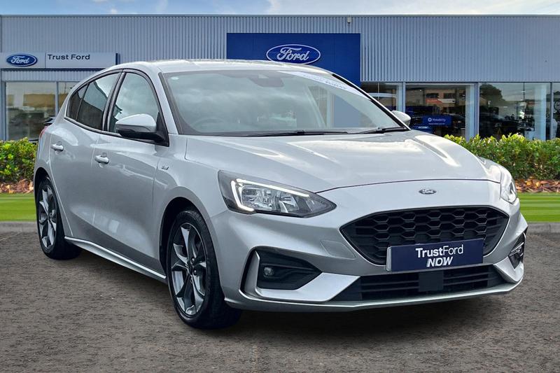 Insurance Group 12, Bluetooth system, Digital clock, Easy fuel capless refuelling system, Eco mode, Ford pass connect, Ford SYNC 3 with 8 TFT touchscreen, and app link Android auto/Apple carplay, Intelligent speed assist, Lane keeping aid with lane departure warning, PAS, Selectable drive mode, Trip computer, 'Quickclear' heated windscreen/heated washer jets, Auto headlamps (on/off), Body colour large rear spoiler, Body colour side skirt, Body coloured bumpers, Body coloured door handles, Body coloured electrically operated and heated door mirrors with side indicators, Electrically operated front and rear windows with one touch opening and closing, Front variable intermittent wipers with electric wash, Halogen reflector headlamps, Heated rear window, LED daytime running lamp, LED front fog lamps with cornering function, Polished twin tailpipe, STLine upper and lower grille with full body styling kit and wing badges, Tailgate wash/wipe, 3 spoke flat bottomed leather steering wheel with red stitching, 60/40 split back and cushion rear seats with 2 height adjustable headrests, Alloy finish pedals, Aluminium gear knob, Centre console with armrest, Cloth upholstery with red stitching, Dark headliner, Driver's lumbar support, Front floor mats, Height adjustable front headrests, Isofix child seat preparation, Manual air conditioning, Reach + rake adjustable steering column, Rear centre headrest, ABS+Electronic Brake force Distribution, Auto hold function, Driver airbag, Electronic parking brake, Electronic