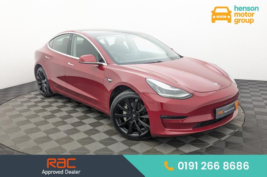 Newcastle upon TyneInsurance Group 50, 1 Previous Owner, Henson Car Store presents the TESLA Model 3 (Dual Motor) Long Range Saloon 4dr Electric Auto 4WDE (346 ps) finished in Red. This 2020 Tesla Model 3 Long Range offers an impressive new vehicle range of 348 miles, making it an excellent choice for those seeking extended journeys. As an electric vehicle with Four Wheel Drive, it combines efficiency with capable performance. This particular model features a 78 kWh battery, which can be fully charged at home using a 7kW charger in approximately 12 hours. For quicker top ups, it can reach 80% charge in just 26 minutes at a public charging station. The Model 3 Long Range comes equipped with a range of notable features designed to enhance your driving experience. These include a Bluetooth connection for seamless audio and calls, rear parking sensors to aid manoeuvrability, and Blind Spot Information to increase awareness of your surroundings. Comfort is assured with air conditioning, and the fixed panoramic glass roof adds a sense of spaciousness and light to the cabin. The 348 mile range at new is a significant highlight, indicating its superior ability to cover longer distances compared to many other electric vehicles. Stock Number 086 Henson Car Store is the latest addition to Henson Motor Group, offering a handpicked selection of up to 500 quality used vehicles. Our prices are checked daily for exceptional value, with sameday collection available. We take pride in delivering excellent service and outstanding value. As an RAC Approved Dealer, every vehicle undergoes an 82point RAC inspection. Each car includes a complimentary warranty, new MOT, full history verification, and expert servicing by our qualified technicians all prepared to the highest standards. We offer marketleading partexchange valuations, settle existing finance, and provide flexible finance options tailored to all budgets and credit profiles. With no admin fees and new vehicles arriving daily, we aim to make your carbuying experience smooth and hasslefree. We also offer nationwide delivery, plus personalised videos and images on request. To arrange a test drive contact our team on 0191 266 8686 open 7 days a week..Panoramic Glass Roof, Sat Nav and DAB Radio, 19 Inch Alloy Wheels, Cruise Control with Lane Assist, Heated Vegan Leather Seats, Red, 19in Alloy Wheels Silver Sports, 12Way Power Adjustable Front and Rear Heated Seats, 15in Touchscreen with Onboard Maps and Navigation, 18in Alloy Wheels Aero, 2 Zone Climate Control, 3x3 Point Rear Seat Belts, 6040 Split Folding Rear Seats, ABS Antilock Braking System, Adaptive Cruise Control, Adaptive Steering, Air Conditioning, Airbags 6, Airbags Curtain, Airbags Driver, Airbags Passenger, Airbags Side, Ambient Interior Lighting, Audio Remote Control, Auto Dimming Power Folding Heated Side Mirrors, Automated HighBeam Assist, Automatic Emergency Braking, Autopilot Function, Blind Spot Information, Bluetooth Connection, Body Coloured Bumpers, Centre Console with Storage 4 USB Ports and Docking for 2 Smartphones, Collision Avoidance, Custom Driver Profiles, DVD, Daytime Running Lights LED, Digital Radio, Electric Hinged Side Doors Front, Electric Hinged Side Doors Rear, Electrically Adjustable Drivers Seat, Electrically Adjustable Passenger Seat, Electrically Adjustable Steering Column TiltTelescopic, Electronic Stability Control and Traction Control, Fixed Panoramic Glass Roof, Front Armrest, Front Cross Traffic Camera, Front Electric Windows, Front Fog Lights, Front Head Restraints, Front Parking Sensor, Front Trunk and Interior Floor Mats, Height Adjustable Drivers Seat, InCar Internet Streaming Music and Media, Interior Carpeting, Internet Browser, Internet Connection, Isofix Child Seat Anchor Points, Keyless Entry and Remote Control with App, Keyless Go, LED Foglights, LED Headlights, Lane Departure Warning, LocationAware Automatic Garage Door Opener, Map and Reading Lights, Media Storage, Mobile Phone App Interface, Navigation System, NonSafetyCritical Software Updates over Cellular, OEM Sound System, Park Assist Camera, Power Steering Speed Sensitive, Premium Audio 14 Speakers 1 Subwoofer 2 Amps and Immersive Sound, Radio AMFM Internet Streaming, Rear Cross Traffic Camera, Rear Electric Windows, Rear Headrests, Rear Parking Sensor, Remote Central Locking, Reverse Parking Aid, SatelliteView Maps with Live Traffic Visualisation and Navigation, Seats Heated Front, Service Indicator, Software Updates over WIFI, SteerByWire Technology, Steering Wheel Mounted Controls, Telephone, Tinted Glass Roof with Ultraviolet and Infrared Protection, Traction Control, Traffic Si