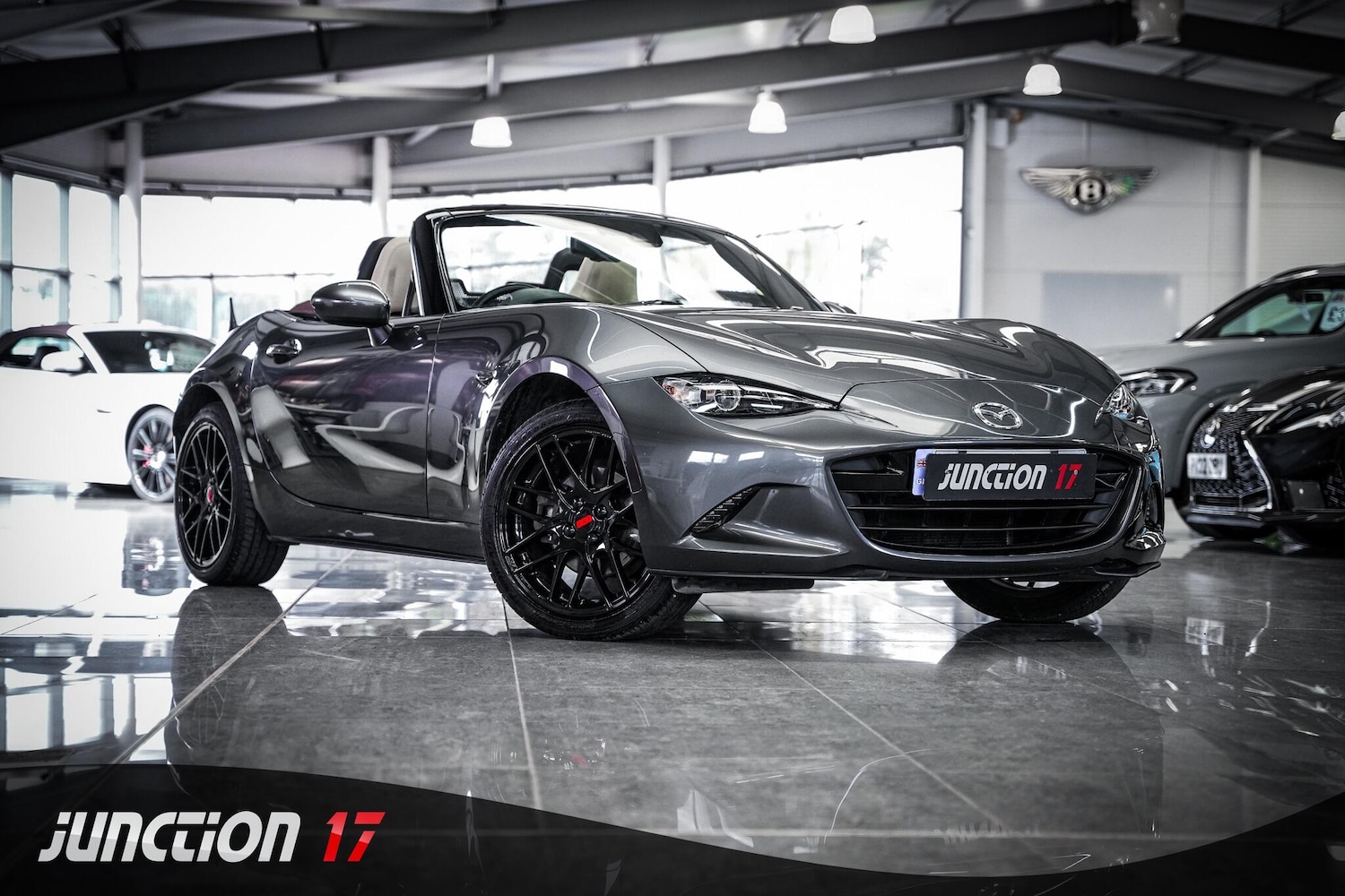Peterborough*CLICK BUY COLLECT* FINANCE AVAILABLE! HPI CLEAR! Junction 17 Cars now have to offer a stunning Mazda MX5 2.0 SKYACTIVG ZSport Euro 6 2dr.. 6 x Service Records.. Finished in Machine Grey and complemented by 'Sand' Leather Upholstery.. Desirable Specification.. Heated Seats.. Navigation.. Cruise Control.. Rear Parking Sensors.. 17'' Alloys in Gloss Black.. DAB Radio.. Keyless Start.. and more.*ANY THIRD PARTY VEHICLE INSPECTIONS ARE WELCOME* *WE WILL BEAT ANY CAR VALUATION SITE FOR YOUR PART EXCHANGE* Junction 17 Cars (Runner Up at the Motor Trader Independent Dealer Awards 2019 nominated for Car Supermarket of the Year Award) is a unique family run business with over £7 millions worth of stock currently split over our purposebuilt showroom in Yaxley, Peterborough and our new showrooms in Grantham and Rugby. Our vehicles can also be reserved with a £99 refundable holding deposit to ensure that they are professionally prepared/valeted for your viewing pleasure. Competitive HP and PCP packages are available with decision/approval available within 15 minutes. We also offer comprehensive warranties over a variety of different terms as well as Williams Ceramic Coating, Flexfuel Engine Carbon Cleaning and more. **NATIONWIDE DELIVERY AVAILABLE** Payment : maximum £500 card payment balance by bank transfer