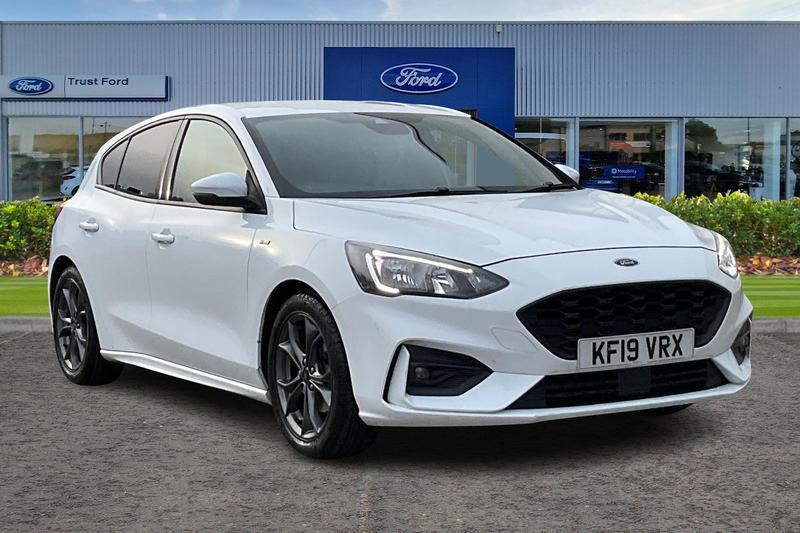 Bluetooth system, Digital clock, Easy fuel capless refuelling system, Eco mode, Ford pass connect, Ford SYNC 3 with 8 TFT touchscreen, and app link Android auto/Apple carplay, Intelligent speed assist, Lane keeping aid with lane departure warning, PAS, Selectable drive mode, Trip computer, 'Quickclear' heated windscreen/heated washer jets, Auto headlamps (on/off), Body colour large rear spoiler, Body colour side skirt, Body coloured bumpers, Body coloured door handles, Body coloured electrically operated and heated door mirrors with side indicators, Electrically operated front and rear windows with one touch opening and closing, Front variable intermittent wipers with electric wash, Halogen reflector headlamps, Heated rear window, LED daytime running lamp, LED front fog lamps with cornering function, Polished twin tailpipe, STLine upper and lower grille with full body styling kit and wing badges, Tailgate wash/wipe, 3 spoke flat bottomed leather steering wheel with red stitching, 60/40 split back and cushion rear seats with 2 height adjustable headrests, Alloy finish pedals, Aluminium gear knob, Centre console with armrest, Cloth upholstery with red stitching, Dark headliner, Driver's lumbar support, Front floor mats, Height adjustable front headrests, Isofix child seat preparation, Manual air conditioning, Reach + rake adjustable steering column, Rear centre headrest, ABS+Electronic Brake force Distribution, Auto hold function, Driver airbag, Electronic parking brake, Electronic
