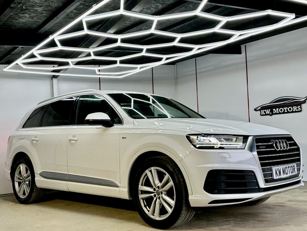 St Albans1 Previous Owner, JUST ARRIVED AUDI Q7 3.0 TDI V6 S LINE SUV QUATTRO EURO 6, HIGHLY POPULAR&ATTRACTIVE NEW SHAPE FACELIFT MODEL AUDI Q7 3.0 45 TDI QUATTRO S LINE IN THE MOST DESIRABLE COLOUR WHITE, TOP SPEC HUGE EXTRAS INCLUDE, 1 FORMER KEEPER, LAST OWNER HAD THE VEHICLE SINCE 2022, 2 KEYS, NEXT MOT DUE 02/27, PRE DELIVERY INSPECTION PRIOR TO SALE FOR TOTAL PEACE OF MIND, EXCEPTIONAL VALUE FOR MONEY FOR A NEW SHAPE DRIVES AND SOUNDS LIKE NEW UPGRADES INCLUDE LATEST VIRTUAL COCKPIT DASH, APPLE CARPLAY, DYNAMIC REAR LIGHTS, PART LEATHER SLINE SPORT SEATS HEATED FRONT, DAB RADIO, BT AUDIO, ELECTRIC BOOT CLOSE, ELECTRIC FOLDING MIRRORS, SAT NAV, REV CAM AND MUCH MORE, HIGHLY POPULAR AND DESIRABLE WELL KNOWN FOR THERE SAFTY AND RELIABILITY STUNNING LOOKS SUPERB PERFORMANCE, VERY PRACTICAL AND ECONOMICAL IDEAL FAMILY 7 SEATER DRIVE AROUND IN PURE COMFORT AND STYLE, HERE AT KW MOTORS WE PRIDE TO DELIVER GREAT CARS & A BETTER SERVICE. WE HAND PICK OUR CARS AND THEY ARE SUBJECT TO DETAILED CHECKS PRIOR TO SALE. ALL OUR CARS WILL UNDERGO A 128 POINT HEALTH CHECK CARRIED OUT BY A TRAINED TECHNICIAN AND RECEIVE A STAMP OF APPROVAL. AA APPROVED CAR AS PART OF THE AA PROMISE WE ALSO PROVIDE A LONG MOT SO BUY WITH CONFIDENCE. 12,24 & 36 MONTHS EXTENDABLE WARRANTY AVAILABLE & THE OPTION OF DRIVE AWAY INSURANCE. ALL DEALER FACILITY ARE OFFERED & WE ARE OPEN 7 DAYS A WEEK. GREAT FINANCE PACKAGE AVAILABLE SO PLEASE INQUIRE WITH US. WE HAVE A DEDICATED AFTER SALES TEAM. LOCATED CONVENIENTLY JUST OFF JUNCTION 21A ,M25. WE ARE EASY ACCESIBLE VIA THE M1 & M25 MOTORWAY. WE AIM TO BE HERTFORDSHIRE MOST COMPETITIVE DEALERSHIP. £299 ADMINISTRATION FEE. PLEASE CONFIRM WITH A MEMBER OF STAFF FOR AN ACCURATE SPEC LIST AS THE DATA IS PULLED FROM AUTOTRADER AND NOT ALWAYS CORRECT..SAME DAY FINANCE ACCEPTANCE, DRIVE AWAY INSURANCE AVAILABLE(opt), GREAT PRICES OFFERED ON PART EX, DELIVERY AVAILABLE (OPT), EXTENDED WARRANTY UPTO 3 YEARS, Matrix LED Headlights with LED Rear Lights and Dynamic Rear Indicators, Glacier White, Rear Side Airbags, Steering Wheel 3Spoke LeatherMultifunctionFlat BottomedSportsShift Paddles, Leather Package, Extended LED Interior Lighting Package MultiColoured, Deluxe FourZone Automatic Climate Control, Audi Exclusive Floor Mats, 21in Alloy Wheels 5ArmTurbine Design Contrasting Grey Partly Polished Alloy Wheels, 20in Alloy Wheels 5Parallel Spoke Design, 6Airbag System, 7 Seats, Adaptive Air Suspension, Aluminium Roof Rails, Anti Theft Locking Wheel Bolts, AntiTheft Alarm, Audi Connect Infotainment Services 36 Month Trial, Audi Connect Safety and Service, Audi Drive Select, Audi Hill Hold Assist, Audi Parking System Plus, Audi Phone Box with Wireless Charging, Audi PreSense City, Audi Smartphone Interface, Audi Sound System, Audi Virtual Cockpit, AutoDimming RearView Mirror, Bluetooth Interface, Body Coloured Door Mirrors, Cloth Headlining in Black, Colour Drivers Information System with 7in HighResolution TFT Screen, Cruise Control with Speed Limiter, Door Mirrors HeatedElectrically AdjustableFolding with Memory Function, Door Sill Trims with S Line Logo, DualZone Electronic Climate Control, Driver and Front Passenger Memory Function for the Electrically Adjustable Front Seats, ESC Electronic Stabilisation Control inc ABS EBD ASR EDL, Electric Windows Front and Rear, Electrically Adjustable Front Seats with 4Way Lumbar Support and Driver Memory Function, Electromechanical Parking Brake, First Aid Kit and Warning Triangle, Front Centre Armrest Adjustable, Front and Rear Floor Mats, Heated Front Seats, HighBeam Assist, Hill Descent Control, ISOFIX Child Seat Mounting, Interior Light Package, Keyless Go with Remote Central Locking, LED Headlights with LED Rear Lights and Dynamic Rear Indicators and HighBeam Assist, Light and Rain Sensor, Luggage Compartment Sill Protection in Stainless Steel, MMI Navigation Plus including MMI Touch, MMI Radio Plus and DAB, Pedals in Stainless Steel, Power Operated Tailgate, Power Steering Servotronic, Privacy Glass, Rear View Camera, S Line Body Styling, Seat Belt Monitoring, Steering Wheel 3spoke S line Multifunction Leather with Paddleshift, Tool Kit, Tyre Pressure Loss Indicator, Tyre Repair Kit, Upper Inlays in Brushed