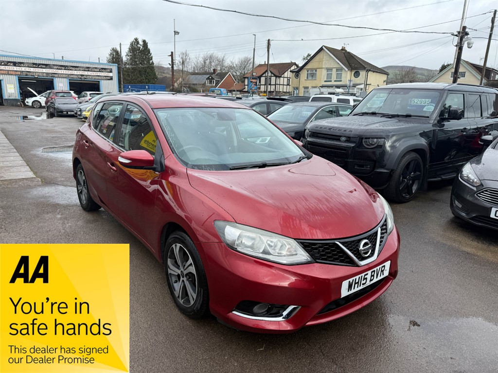 CaerphillyInsurance Group 11, 1 Previous Owner, Nissan Pulsar 1.5 DCi Acenta in metallic red. An absolutely fantastic example here, in great condition both inside and out. Clearly a very well cared for car and it shows. Drives as good as it looks too. This 2015 model features a sleek red hatchback design, making it not only a practical choice but also a striking addition to your daily drive. With a remarkable combined fuel consumption of 78.5 mpg, this diesel vehicle is designed to keep running costs low, making it an ideal option for both city commutes and longer journeys. Tax is just £20 a year too! Good spec including Bluetooth Hands Free, Bluetooth Audio Streaming, Cruise Control, Dual Zone Climate Control, A/C, Alloy Wheels, 4x Electric Windows etc. Don't miss out on this fantastic opportunity to own a Nissan Pulsar that blends efficiency, safety, and comfort all in one package. Contact us to book a test drive today or call 02920885149.. 12v Socket,Adjustable Steering Wheel,Air Conditioning,Alarm,Alloy Wheels,Anti Lock Brakes,Auto On Headlights,Bluetooth Audio Streaming,Aux Input,Bluetooth Telephone Hands Free,CD Radio,Central Locking,Cloth Upholstery,Cupholders,Driver Airbag,Electric & Heated Door Mirrors,Front & Rear Electric Windows,Fuel Computer,Height Adjustable Drivers Seat,Immobiliser,ISOFIX,Metallic Paint,Multiple Airbags,Passenger Airbag,Power Assisted Steering,Rear Parking Sensor,Remote Central Locking,Split Folding Rear Seats,Traction Control,Trip Computer,Tyre Pressure Monitor,USB,Climate Control,Cruise Control,Front Fog Lights,Dual Zone Climate Control