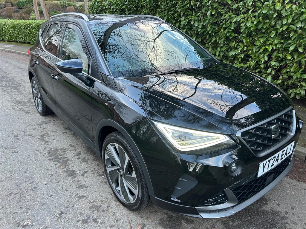 Insurance Group 18, 0 Previous Owners, This 2024 SEAT Arona TSI FR Sport is a superb example, having had only one owner from new. This stylish compact SUV boasts a 1.5 litre Euro 6 petrol engine, delivering an impressive 062mph in just 8.4 seconds. Inside, you'll find a host of desirable features designed for comfort and convenience, including heated front seats, dual zone climate control, and Bluetooth audio streaming with a handsfree system. For seamless connectivity, it includes Full Link smartphone integration, compatible with both Android Auto and Apple CarPlay. The FR Sport trim enhances the driving experience, and this particular model comes equipped with a Safety and Driving Pack featuring rear parking sensors to aid manoeuvrability. You'll also appreciate the excellent fuel economy, achieving up to 49 miles per gallon, and its low CO2 emissions contribute to a lower environmental impact. Furthermore, this Arona sits in a low insurance group, making it an economical choice for many drivers. These highlights demonstrate how this SEAT Arona offers a compelling blend of performance, efficiency, and advanced technology.. 18in Alloy Wheels Performance Cosmo Grey Matt,9.2in Touchscreen Display,Aircare Filter,Alarm with BackUp Horn,AntiLock Braking System ABS,Auto Dimming Rear View Mirror,Black Interior Roof,Bluetooth Audio Streaming with Handsfree System,Chrome Roof Rails and Window Surround,Coloured Air Vent Daring Red,Contrast Roof,Cruise Control with Speed Limiter,Dark Tinted Rear Windows,Digital Cockpit 10in,Double Boot Floor,Driver and Front Passenger Airbags,Dual Zone Climate Control,EBA Emergency Brake Assist and Front Assist,Electrically Adjustable Folding and Heated Door Mirrors,Electronic Engine Immobiliser,Electronic Stability Control ESC,Emergency Tyre Repair Kit,Front Comfort Seats,Front Courtesy Light with Front Reading Lights,Front Seats with Back Storage Pockets,Front and Rear Electric Windows,Front and Rear Fog Lights with Cornering Function at Front,Front and Rear Seatbelt Reminder,Full LED Automatic Headlight,Full Link Smartphone Integration,Heated Front Seats,Height Adjustable Front Seats,Hill Hold Control,ISOFIX Points in Outer Rear Seats with Top Tether Anchorage Points,Illuminated Air Vent Surrounds,Interior Ambient Light,Interior Chrome Pack,Interior Light in Footwell Centre Console and Door Panel,LED Rear Taillights,Lane Keeping System,Licence Plate Lights,Locking Wheel Bolts,Perforated Leather FlatBottomed Steering Wheel with Red Stitching and FR Logo with Leather Gear Knob and Handbrake,Power Assisted Steering,Protective Side Moulding,Rain Sensing Wipers,Rear Fog Light,Rear Spoiler,Roof Coloured Door Mirrors,SEAT Connect Safety Service Remote Online,SEAT Connect Plus,SEAT Drive Profile,Safety and Driving Pack Small,Side Airbag in Front with Curtain Airbag,Six Speakers,Split Folding Rear Seats 6040,Sunvisors with Mirror and Cardholder Driver Side,ThreePoint Seatbelts on All Rear Seats,Tiredness Recognition System,Titan Black Dashboard,Twin Exhaust Pipes,Two Front and Three Rear HeightAdjustable Headrests,Tyre Pressure Monitoring System,Wireless Phone Charger