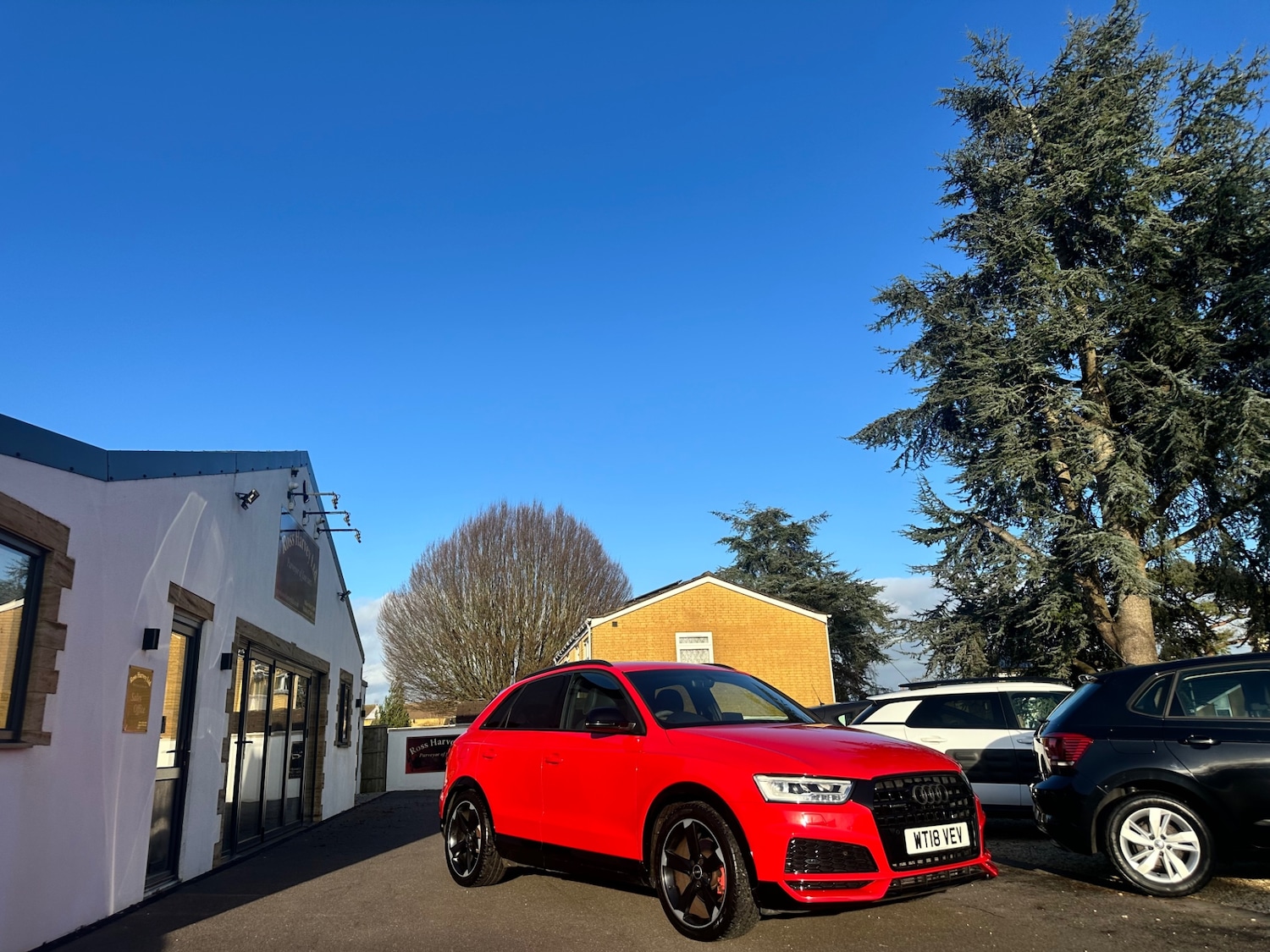 1 Previous Owner, Full Franchise Service History, This gorgeous Audi Q3 'Black Edition' was supplied new by one of our local Audi dealers and has had the same mature owner from new. The car is in immaculate original condition throughout and boasts a full Audi service history with the supplying dealer. Please phone to book a viewing., Next MOT due 16/02/2027, Last serviced at 22,450 miles, Full dealership history, 5 seats, Red, Upgrades Door Mirrors HeatedElectrically AdjustableFoldingAutoDimming Drivers, Heated Front Seats, Perforated AlcantaraLeather Sports Seats S Line Embossed Black, Standard Features 4Way Electric Lumbar Support for Front Seats, 6.5in Colour Display Screen, AMI Audi Music Interface, Audi Drive Select, Audi Parking System Plus, AutoDimming RearView Mirror, BOSE Surround Sound System, Black Styling Pack with Black Roof Rails, Bluetooth Interface, Cloth Headlining in Black, Concert Radio, Cruise Control, DAB Digital Radio, Door Mirrors HeatedElectrically AdjustableFolding, Drivers Information System DIS 3.5in Monochrome Display, DualZone Electronic Climate Control, ESC Electronic Stabilisation Control inc ABS ASR and EDL, Electromechanical Power Steering SpeedSensitive Provides a Precise Steering Feel at High Speeds and Excellent Assistance when Parking., Extendable Luggage Compartment Cover, FlatBottomed 3Spoke Perforated LeatherTrimmed Multifunction Steering WheelContrast Stitching, Front Centre Armrest, Front Lip and Rear Diffuser in Full Paint Finish Diffuser Insert Painted Platinum Grey, Front and Rear Floor Mats, Front and Rear Fog Lights, Full Bodycolour Paint Finish with Front and Rear Bumpers Wheel Arch Trims and Lower Door Trims in Gloss Black, Gear Knob Aluminium, Gloss Black Door Mirrors, Gloss Black Rear Spoiler, ISOFIX Child Seat Mounting and Top Tether, Inlays Piano Finish Black, LED Headlights with LED Rear Lights and Dynamic Rear Indicators, LED Interior Light Package, Light and Rain Sensor, Pedals in Stainless Steel, Power Operated Tailgate, Privacy Glass, Remote Central Locking, Reversible Luggage Compartment Floor, S Line Sports Suspension, Satellite Navigation System SD Card Based, Space Saver Spare Wheel, Steering Wheel Height and Reach Adjustable, Front and rear parking sensors, 2 Keys, HPI clear, Finance available, Part exchanges preferred