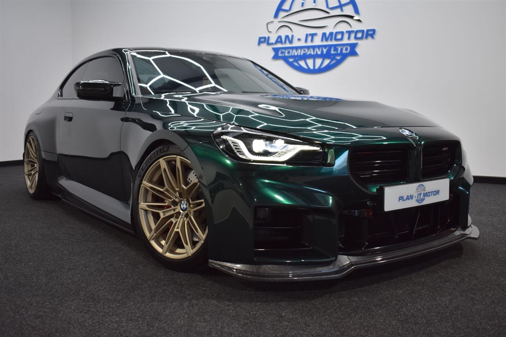 CwmbranAlcantara Steering Wheel, Alcantara Centre Console, Carbon Bucket Seats, Entire Car Wrapped In PPF. 4 x Brand New Michelin Pilot Sport 4 s FULL SYTNER BMW SERVICE HISTORY SERVICE. LAST SERVICE JUST DONE LESS THAN 100 MILES AGO. Finance & pcp Available. Must Be Seen In Person, Looks Incredible!! This M2 Is Completely Prestine. This 2023 BMW M2 BiTurbo presents an exceptional opportunity with its remarkably low mileage of just 8368 miles. Powered by a potent 3.0L Petrol Engine and meeting Euro 6 emission standards, this performance coup is equipped with the M Drivers Package for an enhanced driving experience. Inside, you'll find comfort and convenience with automatic threezone air conditioning and the advanced BMW Live Cockpit Professional, featuring Bluetooth and a Head Up Display. The BMW Connected Package Professional seamlessly integrates your smartphone with Android Auto and Apple CarPlay. Parking is made effortless with the Parking Assistant, which includes a rear camera. This M2 BiTurbo stands out with several key advantages. Its impressive acceleration from 062mph in just 4.1 seconds demonstrates its dynamic capabilities, while a fuel economy of 29 mpg offers a respectable balance for its performance class. Furthermore, its low CO2 emissions and placement in a low insurance group highlight its efficiency and cost effectiveness compared to similar vehicles.. 12V Power Socket Centre Console,19in Front and 20in Rear Alloy Wheels Style 930M Black DoubleSpoke with Mixed Tyres,ABS Anti Lock Braking System,Adaptive LED Headlights,Air Conditioning Automatic with ThreeZone,Airbags,Alarm System,Ambient Lighting,Automatically Dimming Rear View Mirror,BMW Connected Package Professional,BMW ConnectedDrive Online Services,BMW Individual Lights Shadow Line,BMW Legal Emergency Call,BMW Live Cockpit Professional,BMW Mobility System,BMW TeleServices,Bumper System Front and Rear,Carbon Roof,Child Seat ISOFIX Attachment for the Two Outer Rear Seats,Crash Sensor,Cruise Control with Brake Function,Cupholders Two Front Centre Console,DAB Tuner,DSC Dynamic Stability Control with Extended Contents,Door Sill Strips,EPS Electric Power Steering,Electric Memory Seats,Electric Windows Front,Electromechanical Parking Brake,Extended Storage,Exterior Trim High Gloss Shadowline,Floor Mats Velour,FollowMeHome Function,Front Lumbar Support,Front Passenger Airbag Deactivation,Glove Compartment,Harman Kardon Surround Audio Sound System,Headlight BeamThrow Control,Headlining Anthracite,Heat Protection Sun Protection Glazing,HighBeam Assistant,HighGloss Shadowline with Extended Contents,Illuminated M Accents,Interior Lighting,Interior Trim Carbon Fibre,Interior and Exterior Mirror Package,LED Rear Lights,LED Registration Plate Light,Luggage Compartment Light,M Adaptive Suspension,M Compound Brake Red High Gloss,M Drive,M Drive Professional,M Highlighters Illuminated,M Leather Steering Wheel,M Seat Belts,M Sport Differential,Oil Sensor For Level and Grade,Parking Assistant,Rain Sensor,Rear Folding Headrests,Seats Front Heated,Seats Front M Sport,Shifting Point Display,Speed Limiter,Storage Options,Sun Protection Glazing,TPMS Tyre Pressure Monitoring System,ThroughLoading System,Welcome Light,Widescreen Multimedia Display,M Drivers Package