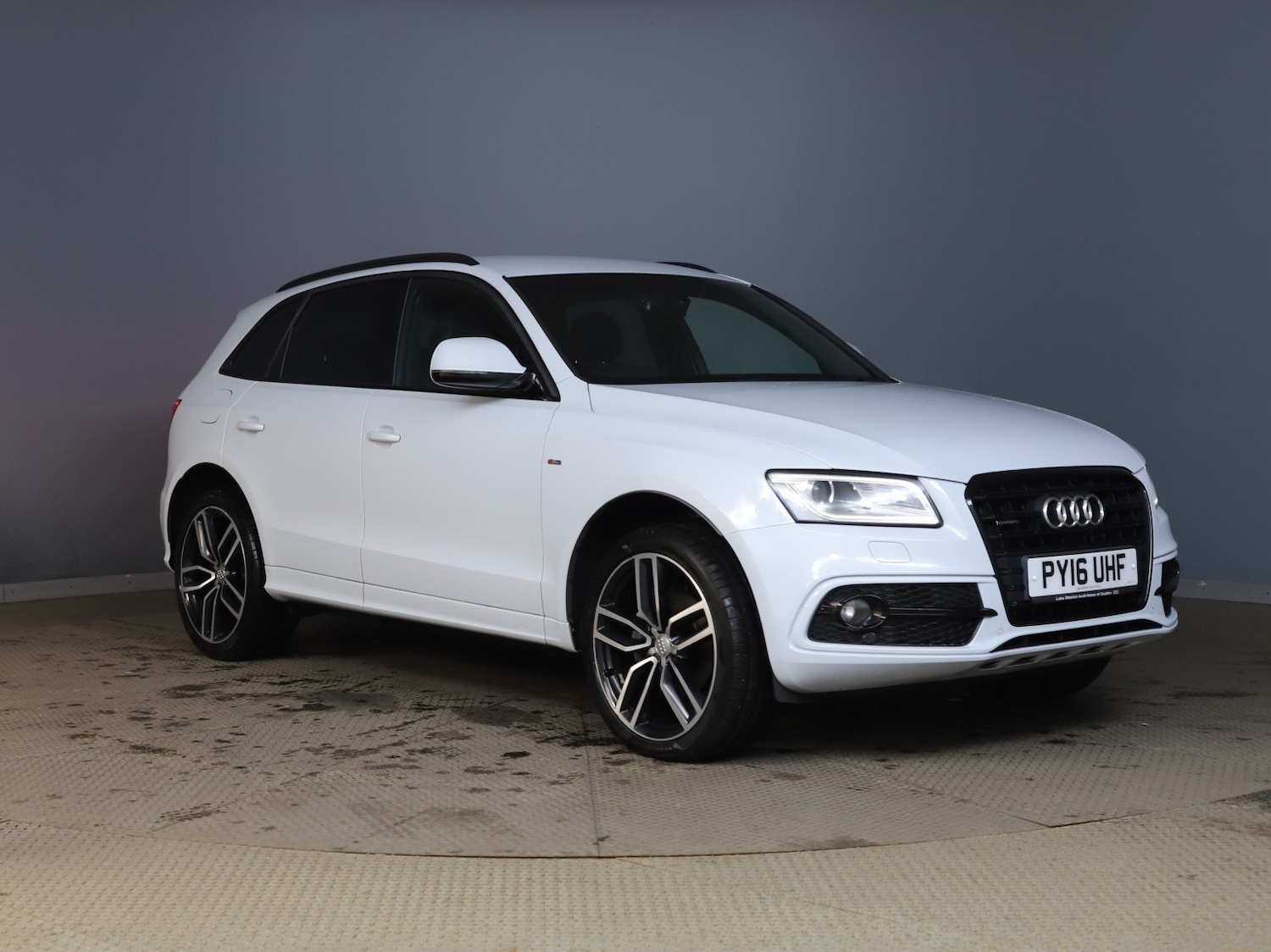 audi q5 2.0 tdi 190 bhp quattro sline plus edition 7 spd stronic automatic transmission euro 6 ulez compliant The Audi Q5 isnt a typical SUV,it combines the poise and athleticism of a coup with the practicality and space of a much larger car It also offers the exceptional grip of the quattro allwheeldrive Exterior equipment Diffuser in Platinum grey Rear LED lights S line exterior styling package including S line badges on front wings S line front bumper S line rear diffuser S line side skirts S line grille with black vertical bars Xenon headlights with automatic headlightrange adjustment headlight washers and LED daytimerunning lights Interior equipment Black headlining S line 3spoke leather multifunction steering wheel with gearshift paddles S line sill plates and aluminium loading strip for the boot Front Sports seats in Fine Nappa leather with electric lumbar support S line embossed and heated, piano black inlays, Exterior equipment Audi parking system plus Acoustic and visual parkassist system for the front and rear with MMI screen display; measurement is by ultrasonic sensors concealed in the bumpers Electric tailgate Privacy glass Interior equipment MMI Navigation system plus Hard disc navigation with topographical map display places of interest and town models in 3D with high resolution 7 inch colour TFT display The system offers three alternative routes with the ability to scroll along the selected route and manoeuvre within the map Uses 7digit postcode recognition Includes split screen mode for route information dynamic route guidance (TMC) intersection zoom function motorway exits and lane recommendations in Drivers Information System (DIS) Includes 2 SD card readers single CDDVD player 40GB hard drive and Jukebox (20GB) for storing and managing music files in WMA and MP3 format Includes European navigation data (where digitised) Additional functionality is available when combined with optional Mobile telephone preparation High with Audi Connect (9ZW) 21 inch x 85J 5twinspoke Star design alloy wheels in titanium look with a highgloss finish option code PQ8 Technology Package Towing Equipment Preparation Cruise Control Rest Recommendation System Tyre Pressure Loss Indicator Chrometrimmed,Flatbottom Design Exhaust Pipe,Door Mirrors Electrically Adjustable and Heated plus power folding Privacy Glass black Roof Bars sline Styling Package Front and Rear Fog Lights and Rain Sensor AutoDimming RearView Mirror Cloth Headlining in Black Deluxe 3Zone Climate Control Front Centre Armrest Electromechanical Power Steering ESP Electronic Stability Programme Electromechanical Parking Brake Hill Descent Control ISOFIX Child Seat Mounting Misfuelling Inhibition Remote Central Locking Traction Control ABS AntiLock Braking System,103,000 miles with history,looks and drives superb euro 6 ulez compliant 7 spd stronic automatic transmission this high spec audi.folding electric heated mirrors 21 inch alloy wheels,audi black edition styling kit,front and rear heated seats,electric panoramic roof,finished in audi's [ly7f] suzuka greywhite