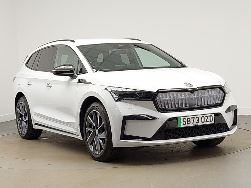 LinwoodVoice control system, Virtual cockpit, Satellite navigation system, Rear parking sensor, Gesture control, 13" touchscreen display, Electronic engine sound, 135 kW DC charging, Rain and light sensors, Heat insulating darkened glass in side and rear windows, Front sport seats, SportLine design pack Enyaq, Parking pack Enyaq