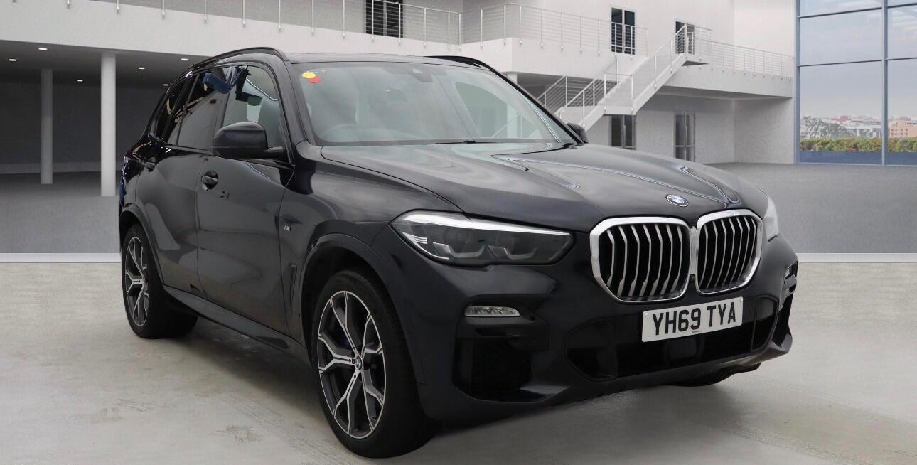 Birmingham2 Previous Owners, This 2019 BMW X5 30d M Sport boasts a clear vehicle history, offering you peace of mind. This impressive four wheel drive SUV is powered by a 3.0L Euro 6 diesel engine, delivering a compelling blend of performance and efficiency. The M Sport trim enhances its sporty appeal, complemented by striking 21 inch M Light Y Spoke Style 741 M Bicolour alloy wheels fitted with run flat tyres. Inside, you'll find the desirable Sky Lounge Panoramic glass sunroof, creating an airy and open cabin atmosphere.The X5 30d M Sport is equipped with a Technology Package, which includes a Head Up Display for convenient information access, a 360 degree camera system for effortless parking, and a premium branded sound system for an enhanced audio experience. Further enhancing comfort are heated seats for the driver and front passenger, part of the M Sport Plus Package. This vehicle also benefits from a low insurance group, making it an economical choice. Its generous boot space is ideal for families and adventurers alike, while the 0 to 62mph acceleration in just 6.5 seconds demonstrates its dynamic capability, setting it apart from many other vehicles in its class.