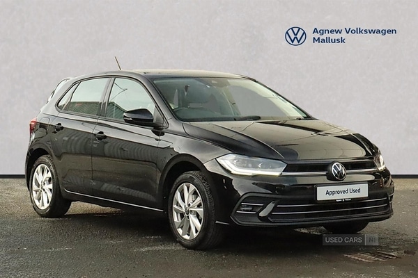 NewtownabbeyInsurance Group 10, Agnew Volkswagen Mallusk are delighted to offer this stunning 2022 Volkswagen Polo Style 1.0 TSI 95PS 5speed Manual 5 Door in Deep Black with 16" 'Palermo' alloy wheels "Discover Media" Navigation system with Wireless App Connect for Apple CarPlay and Android Auto DAB Radio Dynamic road sign display Travel Assist and Front Assist Light and Sight Pack with Autodimming rear view mirror Adaptive Cruise Control LED Headlights LED Taillights 2Zone Air Care Climatronic Air Conditioning Leatherwrapped multifunction steering wheel