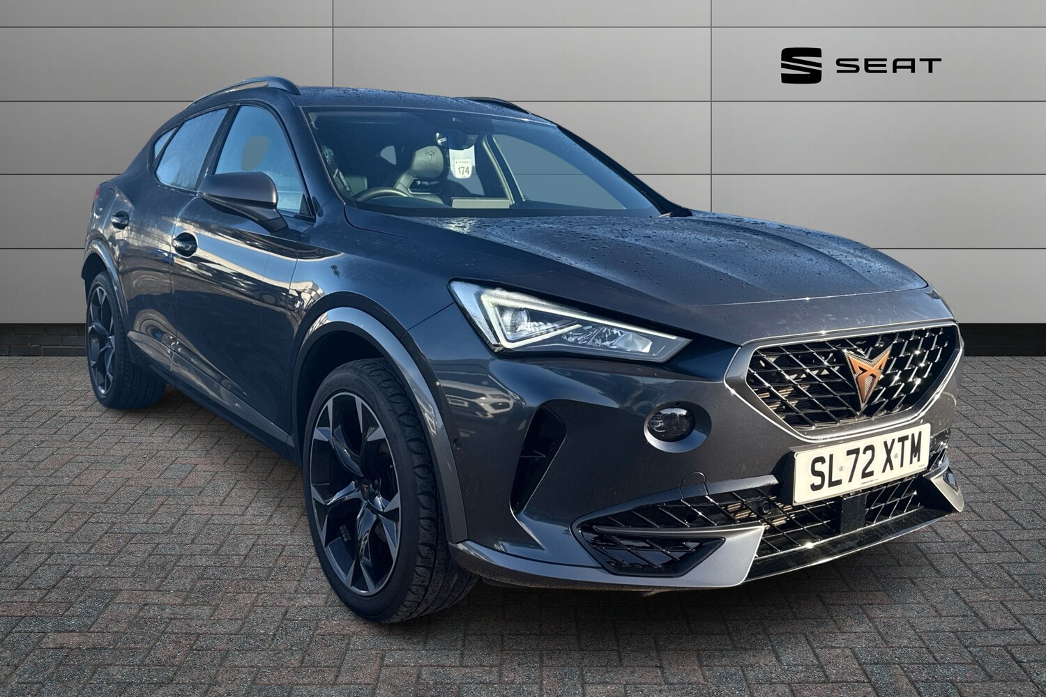 WiganInsurance Group 19, 0 Previous Owners, Digital cockpit and configurable dashboard, Driver alert system, Driving profile selection, Forward collision warning with automatic braking, Lane assist, Navigation system with 12'' Touchscreen Display, Park assist (inc front/rear parking sensors), PAS, Predictive adaptive cruise control with speed limiter, Rear view camera, RPM, trip computer, outside temp gauge, instrument light brightness, low fuel warning light, lights on reminder, gearshift indicator, Service interval indicator, Start/stop system with regenerative braking, Voice control system, Wireless apple carplay, Wireless phone charger, Electronic locking differential and dynamic traction support, Standard suspension, 2 front and 2 rear USB type C sockets, Auxiliary input socket, DAB radio, Auto dimming rear view mirror, Body colour door handles, Body coloured bumpers, Dark grey wing mirror, Daytime running light with automatic headlight control and coming home feature, Dynamic headlight range control, Electric front/rear windows, Electrically adjustable heated and folding door mirrors with memory function, Front fog lamps with cornering function, Gloss black roof rails and window surrounds, LED Headlights, LED Taillights with dynamic indicator, Rain sensing wipers, Rear diffuser with black simulated exhaust pipes, Rear side wing doors, Rear wash/wipe, Third brake light, Tinted rear windows, Welcome lights, 12v power supply in centre console, 12V socket, 12v socket in loadspace, 2 front and 2 rear reading lights, 230V socket, 3 seat bench in 2nd row, 60/40 split rear bench seat with armrest and mechanical seat release, Black headlining, Dust/pollen filter, Front and rear head restraints, Front centre armrest, Height/reach adjust steering wheel, Illuminated interior front door sills, Illuminated sunvisor with mirror, Isofix, Leather multi function steering wheel, Luggage tiedown hooks, Single front passenger seat, Three zone climate control with control panel in rear, Variable luggage/load compartment floor, Wraparound lighting, Genuine Nappa leather Pack Cupra, Safety and driving pack (M) Formentor, 3 point seatbelts on all rear seats, ABS, Brake control system ESC and brake booster, Child proof door locks, Driver and front passenger airbags with front passenger airbag deactivation, Electronic parking brake, Front and rear disc brakes, Front side curtain airbags, Hill hold control, Public ecall, Seat belt reminder for front and rear seats, Tyre pressure monitoring system, Anti theft