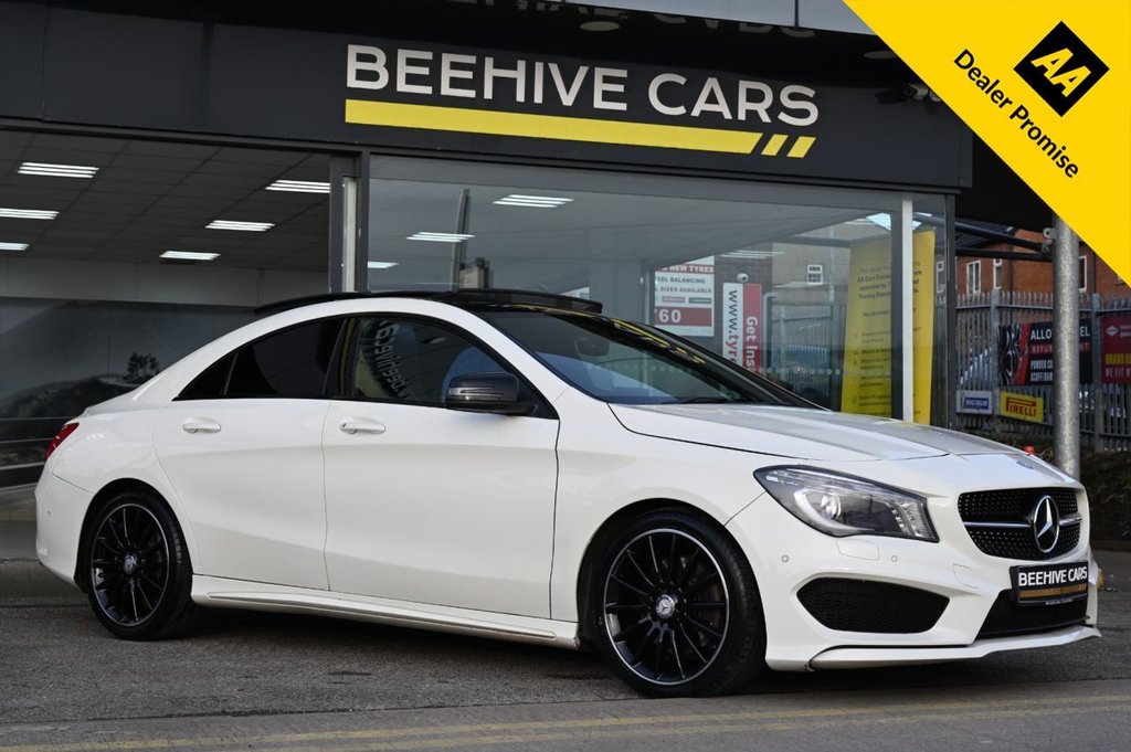 Horwich2 Previous Owners, DRIVE AWAY TODAY OR HOME DELIVERY TO YOUR DOORSTEP FINANCE & PART EXCHANGE ARRANGED ONLINE** 7 DAY MONEY BACK GUARANTEE** Lovely car Mercedes Cla220d amg sport in metallic white with full service history sat nav cd dab radio bluetooth media usb panoramic glass roof half leather seats with armrest heated seats electric folding door mirrors front and rear parking aid sensors xenon lights flat bottom steering wheel with f1 style paddleshifts eco comfort sport individual dynamic driving mode alloys privacy BEEHIVE CARS IS A FAMILY RUN BUSINESS ALL OUR CARS ARE HAND PICKED, INDEPENDENTLY INSPECTED AND SOLD TO GUARANTEED RETAIL STANDARDS. **WE INCLUDE MOT + HPI REPORT + WARRANTY + FULLY VALETED + 12 MONTHS FREE AA BREAKDOWN COVER + 5 DAYS DRIVEAWAY INSURANCE**. TRAIN STATION OR BUS STATION PICK UP IF COMING BY PUBLIC TRANSPORT. NATIONWIDE DELIVERY AND FINANCE PACKAGES AVAILABLE WE RECOMMEND YOU BOOK YOUR VIEWING AND SECURE IT WITH A £100 DEPOSIT. **T & Cs Apply .18in Alloy Wheels AMG 5 Twin Spoke Design BiColour Finish, 7in Colour Display, ABS AntiLock Braking System, Active Bonnet Pedestrian Safety Measure which Detects an Impact and Raises Bonnet by 65mm, Active Park Assist with Parktronic, Adaptive Brake Assist with Hold Function and Hill Start Assist, Adaptive Brake Lamps, Air Vents with Chrome Surround and Cruciform Nozzle, Airbag Driver, Airbags Drivers Kneebag, Airbags Passenger, Airbags Window, Ambient Lighting in Front and Rear Headrests, AMG Bodystyling Front and Rear Apron and Side Skirts, Anti Theft Alarm System with Towaway Protection and Interior Motion Sensor, ASR Acceleration Skid Control, ATTENTION Assist, Audio 20 RadioCDMP3 Compatibility, Automatic Front Passenger Airbag Deactivation, Beltline Strips Black, Bluetooth Connectivity Audio Streaming, Bluetooth Interface for HandsFree Telephone, Brake Calipers MercedesBenz Lettering on Front, Brushed Stainless Steel Sports Pedals with Rubber Studs, Bumpers Body Coloured, Centre Armrest Front with Storage and Contrasting Topstitching, Childproof Locks Manually Operated for Rear Doors and Electrically Operated for Rear Power Windows, Collision Prevention Assist Plus, Controller on Centre Console, Courtesy and Warning Lights in Front Doors and Boot Lid, Crash Sensor with Emergency Opening Function for Doors, CrashResponsive Emergency Lighting, Cruise Control with SPEEDTRONIC Variable Speed Limiter, Cup Holder Double Front, Door Handles Body Coloured, Door Mirror Caps Black, Door Mirrors Electrically Adjustable and Heated, Door Mirrors Integrated LED Indicators, Door Sill Panels MercedesBenz Lettering Illuminated, Drivers Seat HeightAdjustable, Dynamic Select with a Choice of Driving Modes ECOComfortSport and Individual, eCall Emergency Call System, Electric Parking Brake, Electric Windows Front and Rear, Electronic Key Chrome Surround, ESP Electronic Stability Programme, ESP Cornering Dynamics Assist, Exhaust System TwinPipe with Rectangular Tailpipes in Polished Stainless Steel, First Aid Kit, Floor Mats Red Stitched Edging AMG Lettering, Fluid Level Warning Indicator for Fuel Oil Coolant and Washer Fluid, Footwell Lighting Front and Rear, Headlamp Assist Automatic Headlamp Activation, Headlight Wash, Headlights BiXenon, Headlights Integrated Daytime Running Lights LED, Heated Rear Window with Timer Control, High Level Third Brake Light LED, Illuminated Glov