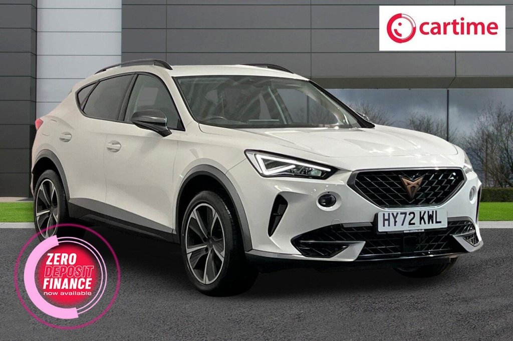 BuryInsurance Group 19, 1 Previous Owner, This 2023 CUPRA Formentor TSI V1 presents an exceptional ownership opportunity, having been driven only 23071 miles by a single owner. This Euro 6 compliant model features a responsive 1.5 litre petrol engine, offering an engaging 060mph time of just 8.9 seconds. The V1 trim level comes equipped with a host of desirable features, including a heated leather multifunction steering wheel with gear shift paddles, and LED headlights with automatic control and coming leaving home functionality. Experience superior comfort and convenience with the three zone climate control, complete with a control panel for rear passengers. The predictive adaptive cruise control with speed limiter enhances your driving experience, making longer journeys more relaxed. These carefully selected features, combined with its low mileage and single owner history, demonstrate that this CUPRA Formentor is a standout choice compared to other vehicles in its class. Lifetime warranty available on this car, plus a £1,000 finance contribution when you part exchange. Voted UK Car Supermarket of the Year two years running, we offer 0% finance, part exchange, and lifetime warranties across our entire range. Every car is thoroughly inspected before sale and comes with a full history check, so you can buy with complete peace of mind. Buy with confidence on our best finance rates. Proud winners of the CarGurus TopRated Dealer 2022 and the MotoNovo Extra Mile Award. .12V Socket, 18in Alloy Wheels Performance Machined Sport Black and Silver, 6040 Rear Seats with Central Armrest and Mechanical Seat Release, ABS AntiLock Braking System, Airbag on Driver and Front Passenger Side with Front Passenger Airbag Deactivation, AntiTheft Alarm, Auto Dimming Rear View Mirror, Black Sports Seats with Copper Stitching, Breakdown Kit, Copper and Aluminium Interior Detailing, CUPRA Connect Safety Service Remote and Online, Daytime Running Lights with Automatic Headlight Control and ComingLeaving Home Lights, Digital Cockpit and Configurable Dashboard, Door Mirrors Electrically Adjustable Folding and Heated, Driver Alert System, Driving Profile Selection, Dynamic Headlight Range Control, Electric Window Front, Electronic Locking Differential with Dynamic Traction Support, Electronic Parking Brake, Forward Collision Warning with Automatic Braking, Front and Rear Head Restraints, Front Centre Armrest, Front Fog Lights with Cornering Function, Front Side Curtain Airbag, Gloss Black Roof Rails and Window Surrounds, Headlining Grey, Illuminated Interior Front Door Sills, Illuminated Sunvisor with Mirror, Interior Ambient Lighting, ISOFIX, Kessy Keyless Entry and Start, Lane Assist, Leather Multifunction Steering Wheel Heated with Gear Shift Paddles, LED Headlight, LED Taillights with Dynamic Indicator, Locking Wheel Bolts, Manually Adjustable Height and Lumbar Support for Front Seats, Navigation System, Part PVC Part Cloth Black with Copper Stitching, Power Steering, Predictive Adaptive Cruise Control with Speed Limiter, Rain Sensing Wipers, Reading Lights 2x Front 2x Rear, Rear Diffuser with Black Simulated Exhaust Pipes, Rear Parking Sensors, Safety and Driving Pack M, Seat Belt Reminder, Three Zone Climate Control with Control Panel in the Rear, Tinted Rear Windows, Tyre Pressure Monitoring System, USB Type C x4 x2 Front and x2 Rear, Variable Luggage Compartment Floor, Welcome Lights, White, Wireless Phone Charger