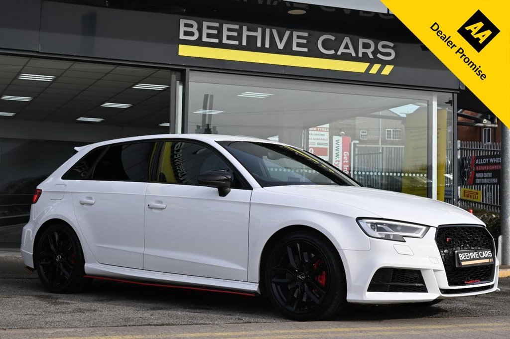 Horwich2 Previous Owners, DRIVE AWAY TODAY OR HOME DELIVERY TO YOUR DOORSTEP FINANCE & PART EXCHANGE ARRANGED ONLINE** 7 DAY MONEY BACK GUARANTEE** Lovely Audi s3 tfsi quattro stronic sportback in metallic white with good service history milltek dab radio bluetooth media usb aux full black sline leather seats with armrest heated seats electric heated door mirrors rear parking aid sensors xenon lights flat bottom sline steering wheel with f1 style paddleshifts auto comfort efficiency individual dynamic audi drive select driving modes alloys privacy BEEHIVE CARS IS A FAMILY RUN BUSINESS ALL OUR CARS ARE HAND PICKED, INDEPENDENTLY INSPECTED AND SOLD TO GUARANTEED RETAIL STANDARDS. **WE INCLUDE MOT + HPI REPORT + WARRANTY + FULLY VALETED + 12 MONTHS FREE AA BREAKDOWN COVER + 5 DAYS DRIVEAWAY INSURANCE**. TRAIN STATION OR BUS STATION PICK UP IF COMING BY PUBLIC TRANSPORT. NATIONWIDE DELIVERY AND FINANCE PACKAGES AVAILABLE WE RECOMMEND YOU BOOK YOUR VIEWING AND SECURE IT WITH A £100 DEPOSIT. **T & Cs Apply .18in Alloy Wheels 5 Twin Spoke Star Design in Contrast Grey with Diamond Cut Finish, 2 x USB Charging Ports and 1 x AUXIN, 6Airbag System with Knee Airbag for Driver, Aluminium Interior Elements, Aluminium Window Trims, AluminiumEffect Door Mirror Housings, Anti Theft Locking Wheel Bolts, AntiTheft Alarm, Audi Beam, Audi Connect Infotainment Services 3 Month Trial, Audi Drive Select, Audi Hill Hold Assist, Audi Smartphone Interface, Audi Sound System, AutoDimming RearView Mirror with Light and Rain Sensor, Bluetooth Interface, Brake Calipers Painted in Black with S3 Logo at the Front, CD Drive, Cloth Headlining in Black, Colour Drivers Information System DIS, Cruise Control, DAB Digital Radio, Door Mirrors Electrically Adjustable and Heated with Integrated LED Side Indicators, DualZone Electronic Climate Control, Electric Windows Front, Electromechanical Parking Brake, Email and Text Messages can be Displayed on your Vehicles MMI, ESC Electronic Stabilisation Control inc ABS ASR and EDL, Exhaust Tailpipe DualBranch Oval Twin with Chrome Finish, First Aid Kit and Warning Triangle, Front and Rear Floor Mats, Front Centre Armrest, Headlights Washers, Heated Front Seats, Heated Windscreen Washer Jets, Illuminated Door Sill Trims with S Logo, Inlays Matt Brushed Aluminium, Instrument Dials with S3 Logo, ISOFIX Child Seat Mounting and Top Tether, Lashing Points in Luggage Compartment, LED Headlights with LED Rear Lights and Dynamic Rear Indicators, LED Interior Light Package, MMI Navigation SD Card Based, MMI Radio Plus with 7in Electrically Retractable Colour MMI Screen, NonSmoking Package, Online Media Streaming Audi MMI Connect App Required, Pedals in Stainless Steel, Platinum Grey S Grille with Chrome Plated Dual Struts and S3 Logo, Progressive Steering, Rear Parking Sensors, Remote Central Locking with 2 Fold Away Keys, S Design Body Styling, S Sport Suspension, Seat Belt Monitoring, Space Saver Spare Wheel, Split Folding Rear Seat Bench 6040 or Fully, Steering Wheel 3Spoke LeatherMultifunctionFlat BottomedShift Paddles, Storage Compartments in the Door Side TrimsCentre ConsoleUnder Drivers Seat, Storage Package, Tool Kit and Car Jack, Tyre Pressure Warning Light