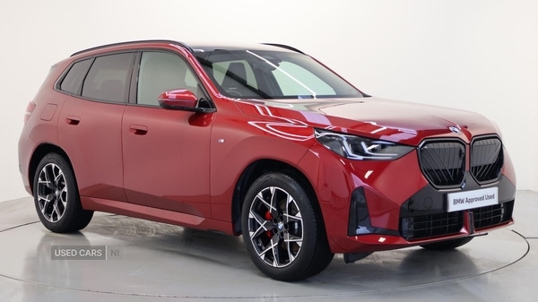Coleraine0 Previous Owners, This 2025 BMW X3 20d M Sport presents an exceptional ownership proposition with its remarkably low mileage, a testament to its careful use. This Four Wheel Drive model, finished in the sporty M Sport trim, boasts a 2.0L Diesel Hybrid engine that meets Euro 6 emission standards. Experience the open air with the Panoramic Glass Sunroof, and enjoy effortless entry thanks to Comfort Access with Keyless Entry. The M Sport variant also includes Electric Memory Seats, ensuring your perfect driving position is always at hand, while the Comfort Pack adds automatic LED headlights and a premium branded sound system for an enhanced journey.Further elevating this X3 are advanced driver aids, including Driving Assistant Plus with Adaptive Cruise Control and Blind Spot Assistance, offering peace of mind on every drive. Its impressive fuel economy of 47 mpg, combined with low CO2 emissions, makes it an efficient choice. The generous boot space provides ample room for all your needs, and with a towing weight of 2500 kg, it offers versatility for various lifestyles. These highlights collectively demonstrate how this BMW X3 offers a superior driving experience compared to other vehicles in its class. Mild Hybrid Technology, EU6 RDE II exhaust emissions standard, Auto transmission with gearshift paddles, Tyre Repair Kit, Variable Sport Steering, 19'' 1035 M Light Yspoke Bicolour Alloy, Alarm System, Comfort Access, Ambient Lighting, Luggage Net, M Decor FineBrushed Aluminium Interior, Electric Memory Seats, Sport seats, Heated front seats, Driving Assistant, Active Guard, Automatic Air Conditioning, BMW TeleServices, BMW Emergency Call, Storage for wireless charging, Personal eSIM, DAB Radio, M Sport Suspension, Highgloss Shadowline Exterior Trim, Anthracite Headlining, COC additional contents, Active Pedestrian Safety, English / onboard literature II, Specific additional contents in M Sport, M Sport exterior parts, M Sport interior parts, M Sport Package, Heated Steering Wheel, BMW Iconic Glow, BMW Individual Lights Shadow Line, M Sport Brakes with Red Calipers, Travel and Comfort System, M Sport Seat Belts, Interior Camera, Panoramic Glass Sunroof, Sun Protection Glass, Front Lumbar Support, Driving Assistant Plus, Parking Assistant Plus, Adaptive LED Headlights, Live Cockpit Pro with Head up Display, Harman/Kardon Surround Sound Audio, Indv. highgloss shadowline extended, Additional M Sport Package Pro Content, M Sport Pro Pack, Technology Pack, Comfort Pack. Red 5